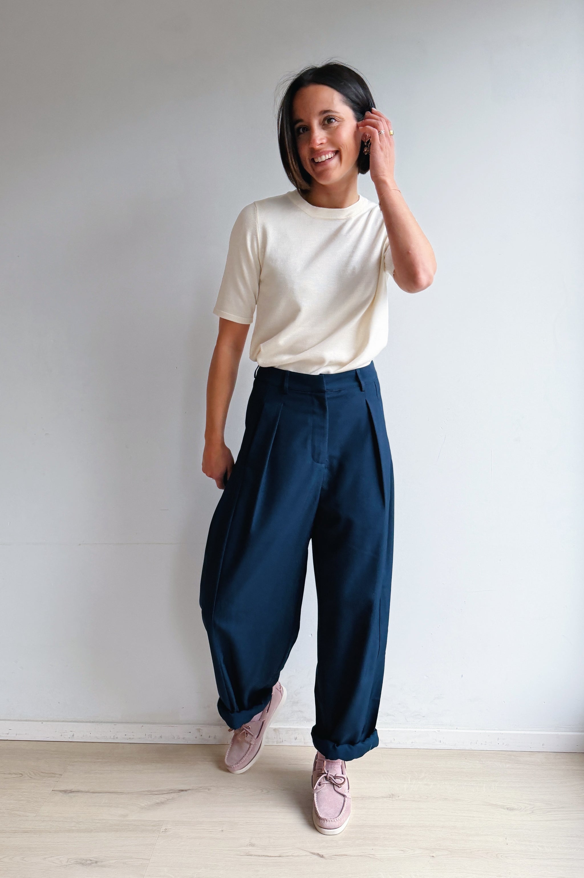 Florence draagt maat S en valt op maat. Wil je graag iets losser, neem een maat groter.