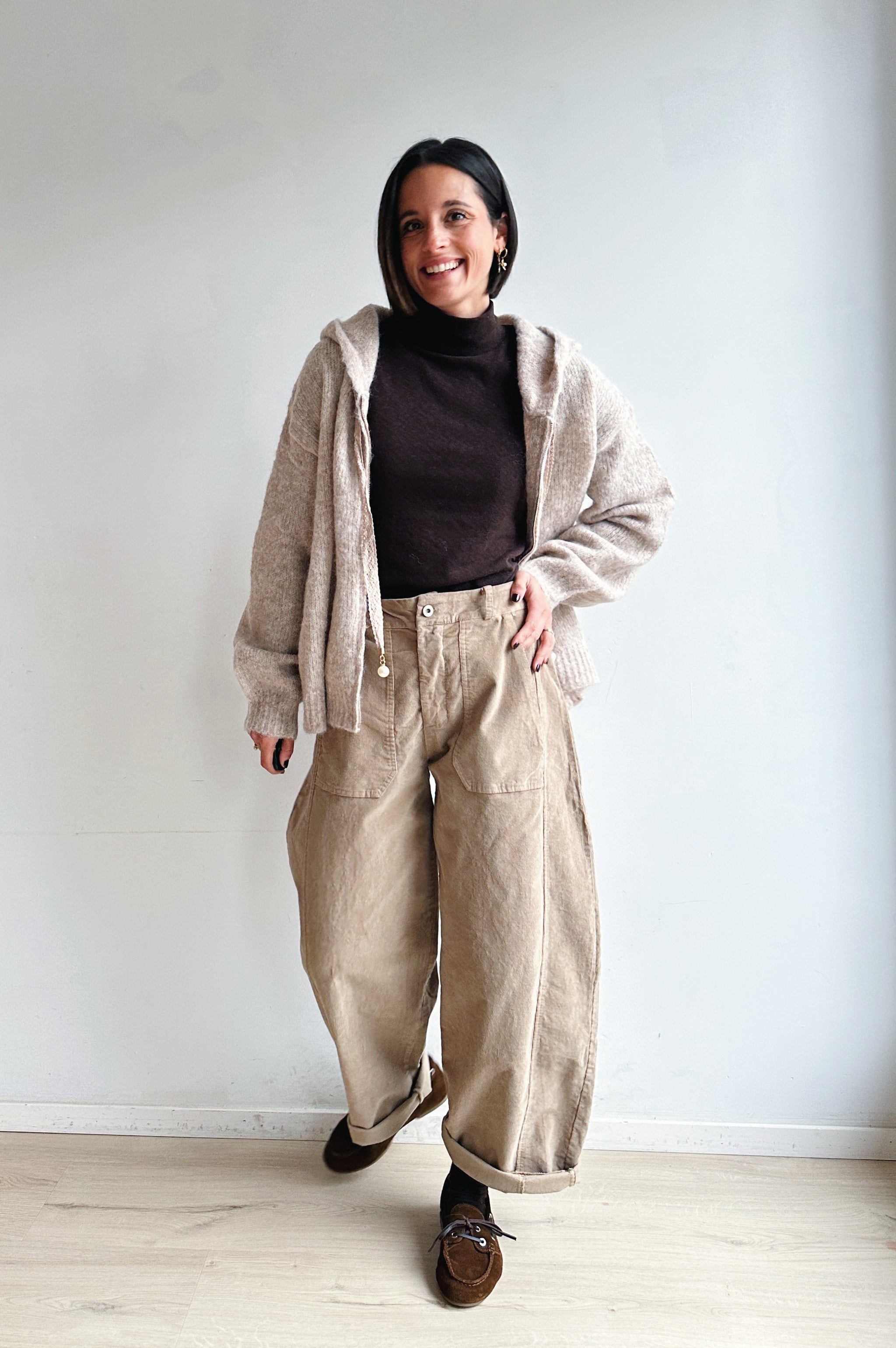 Voeg een dosis comfort en stijl toe aan je kleerkast met deze zalige barrel jeans in zacht corduroy. MEGA TRENDY. De kleur is perfect voor elk seizoen en bieden eindeloze combinatiemogelijkheden. De broek heeft een moderne, eigentijdse pasvorm met een comfortabele rekker aan de achterkant die zich perfect aan je lichaam aanpast.