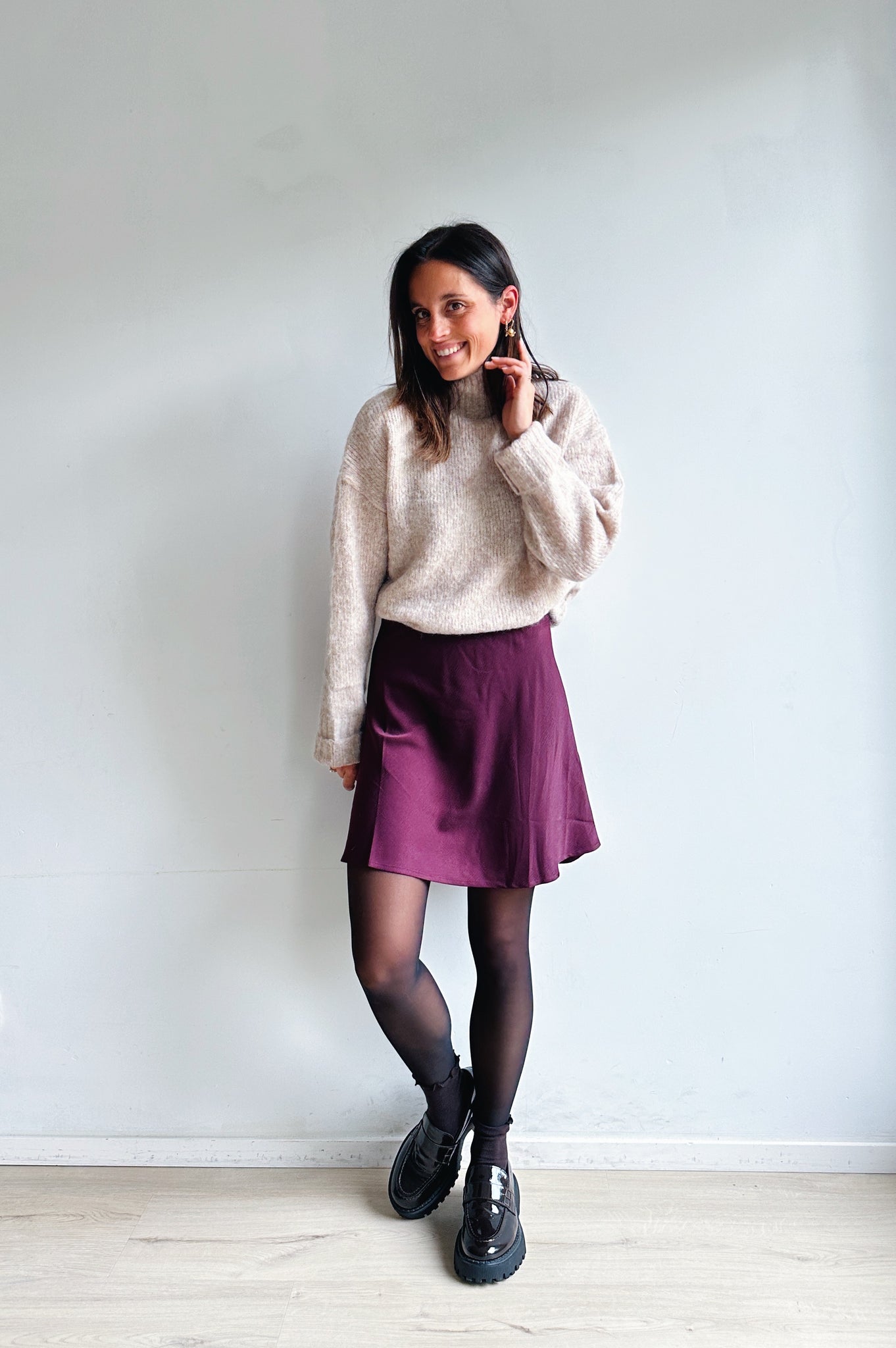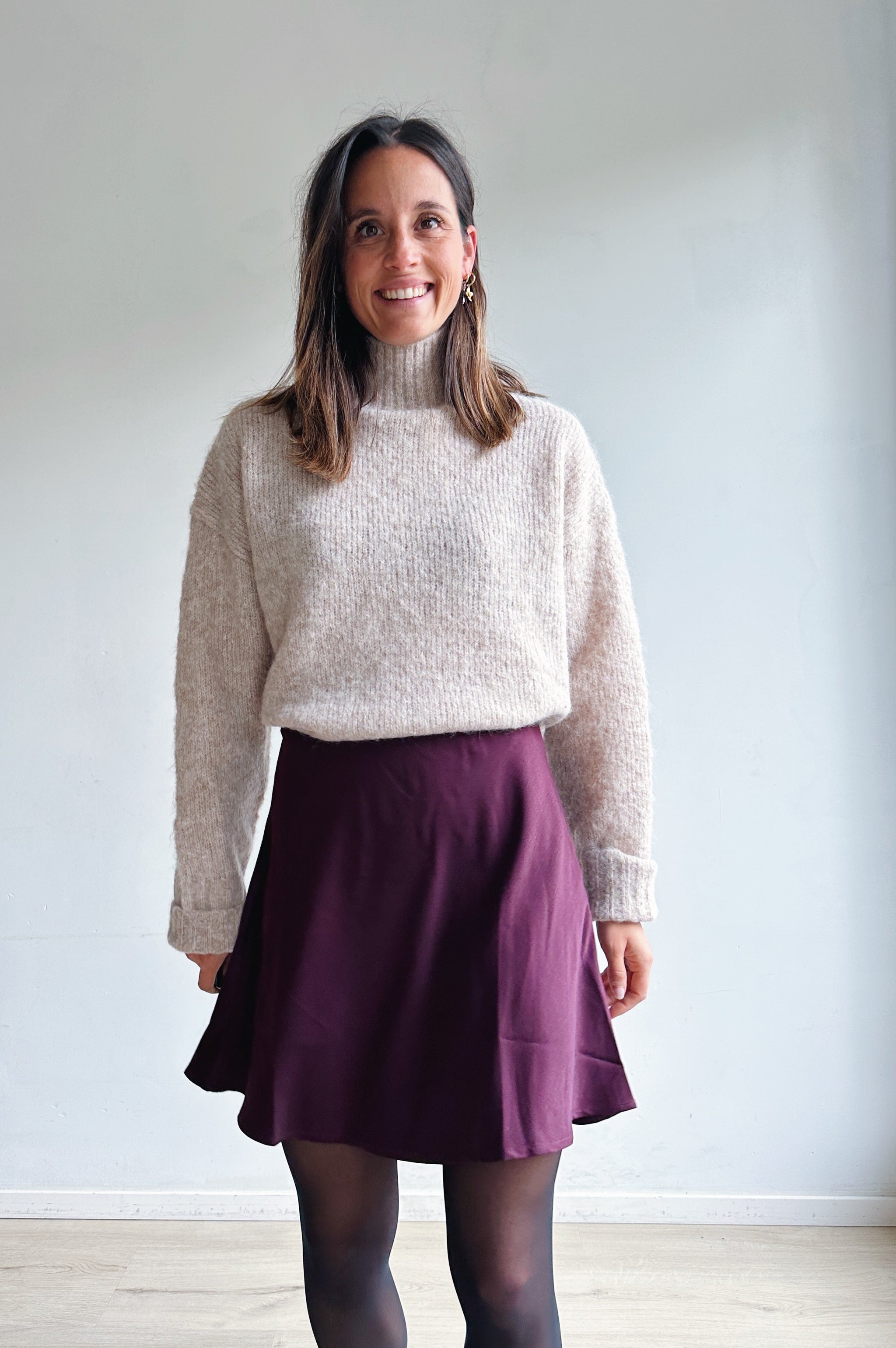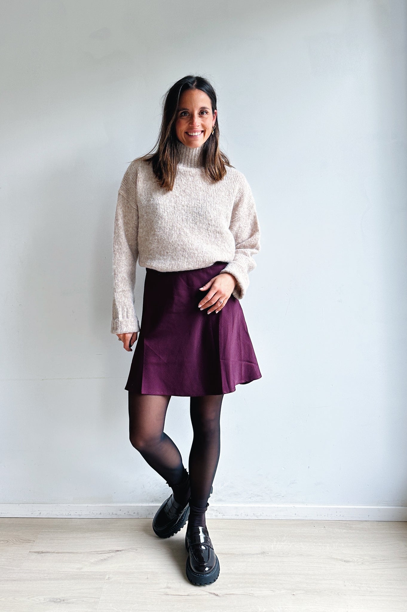 Deze heerlijk zachte coltrui in een warme beige tint is het ultieme cosy item voor koude dagen. De trui heeft een rechte, iets losse pasvorm met een hoge col en brede ribboord aan de onderzijde en mouwen voor een stijlvolle, tijdloze look. Gemaakt van een zachte stof die niet prikt en comfortabel aanvoelt op de huid.