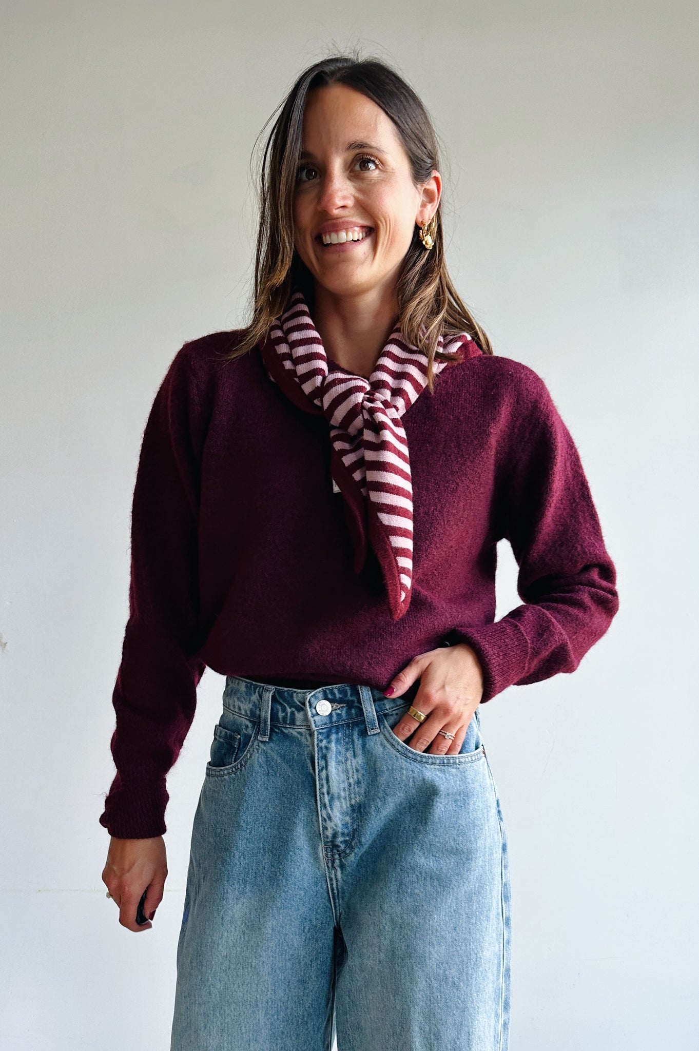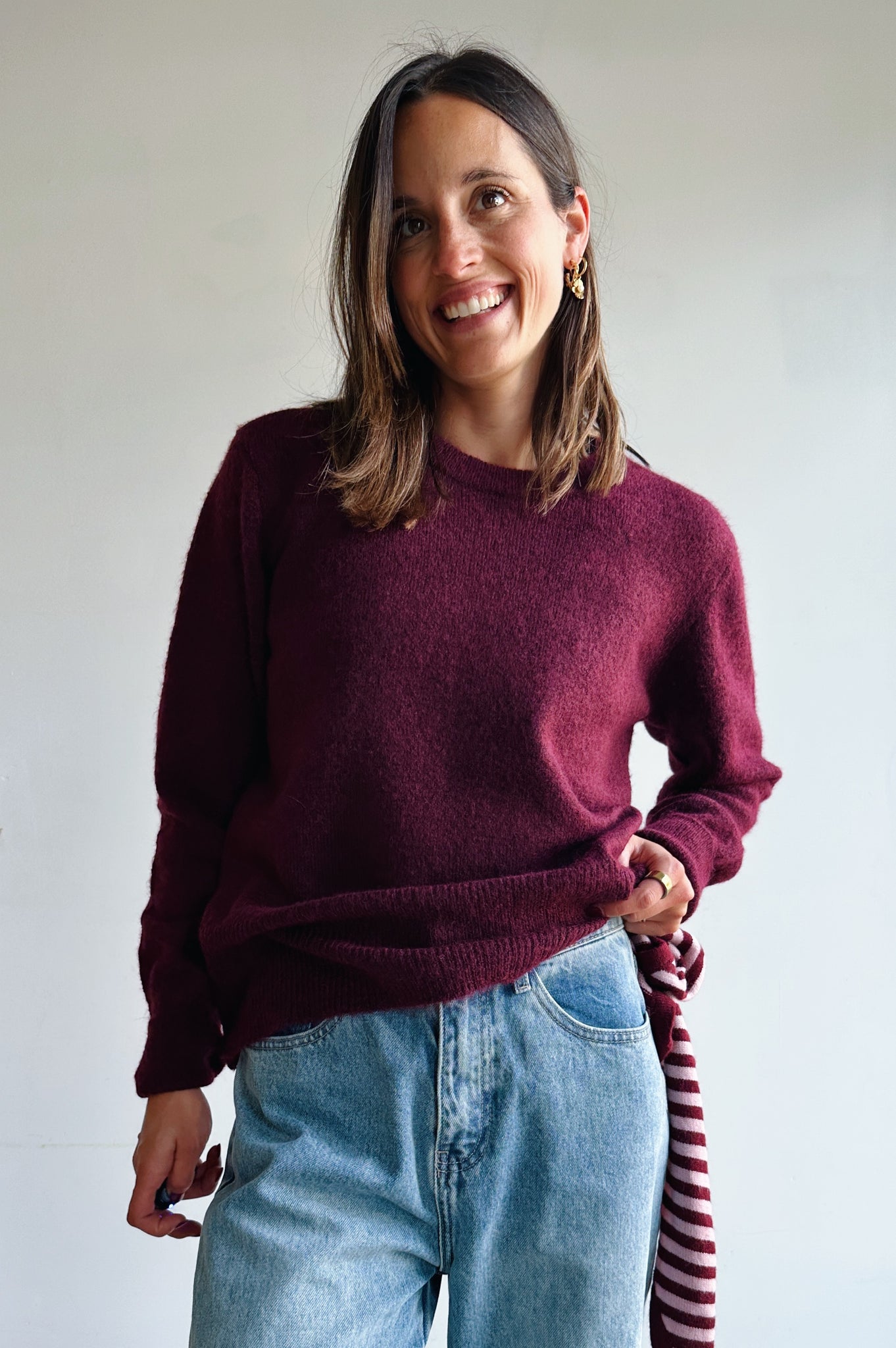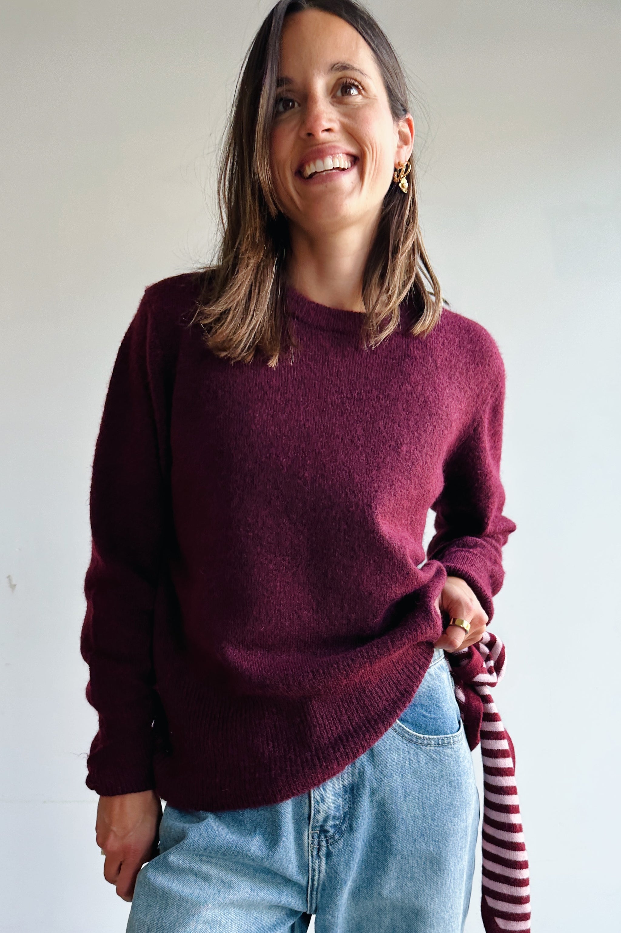 Deze bordeaux pull is een echte basic essential die niet mag ontbreken in je kleerkast. Met zijn ronde halslijn, lange mouwen en geribde boorden straalt hij eenvoud en klasse uit. Het zachte breisel voelt comfortabel aan op de huid en is makkelijk te combineren met zowel jeans als rokken. Dankzij de tijdloze snit en neutrale kleur is dit een veelzijdig item dat je moeiteloos kunt dragen voor zowel casual als meer geklede looks. Perfect als laagje op frisse dagen of als subtiele basis onder een blazer.