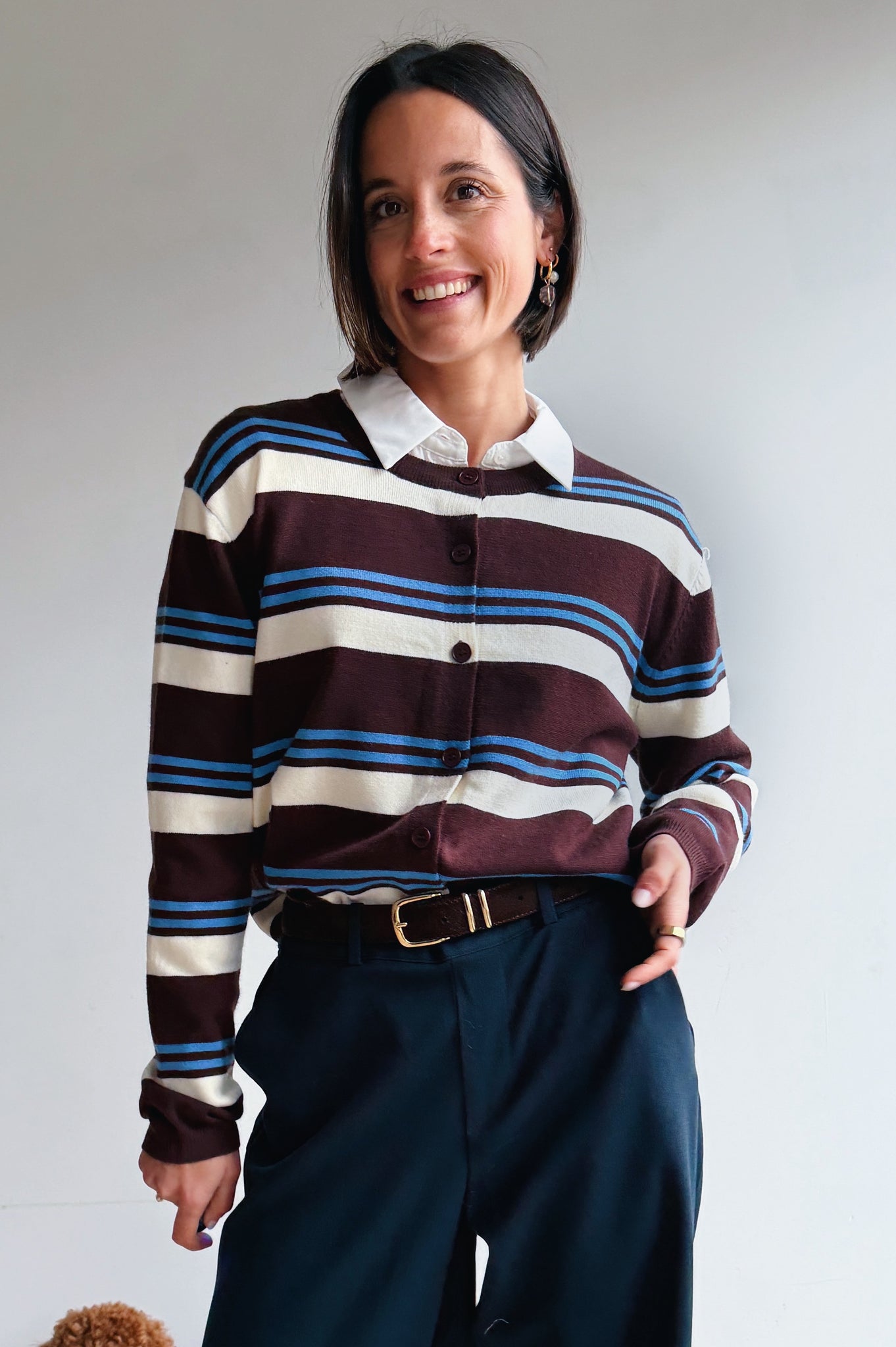 Deze fijne korte gilet met strepen is de perfecte mix van speels en tijdloos. Dankzij de zachte stof en relaxte pasvorm zit hij heerlijk comfortabel, terwijl de knoopsluiting je toelaat om hem zowel open als dicht te dragen.