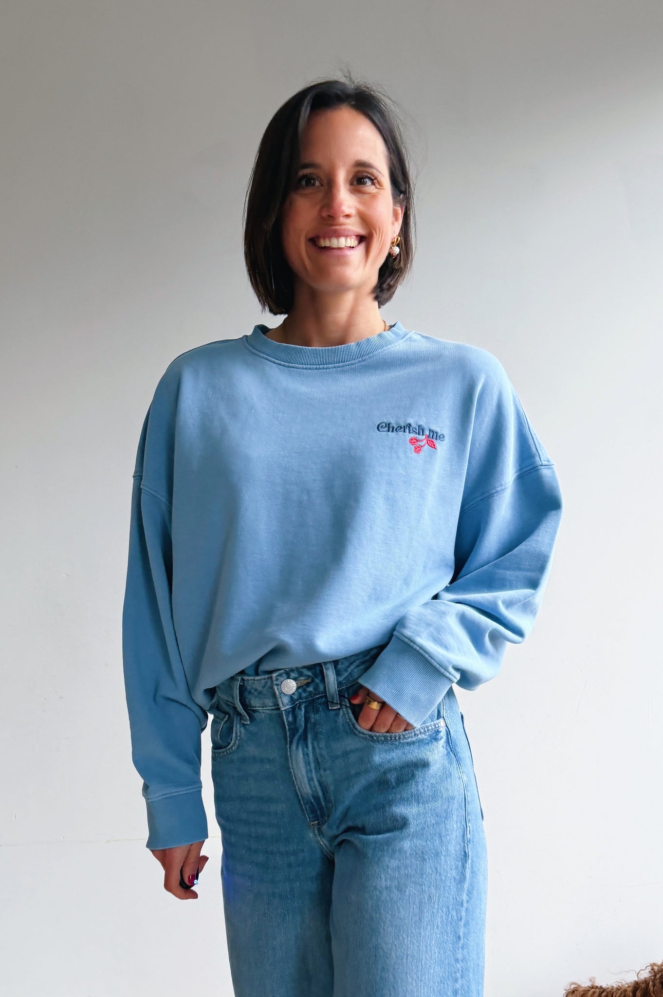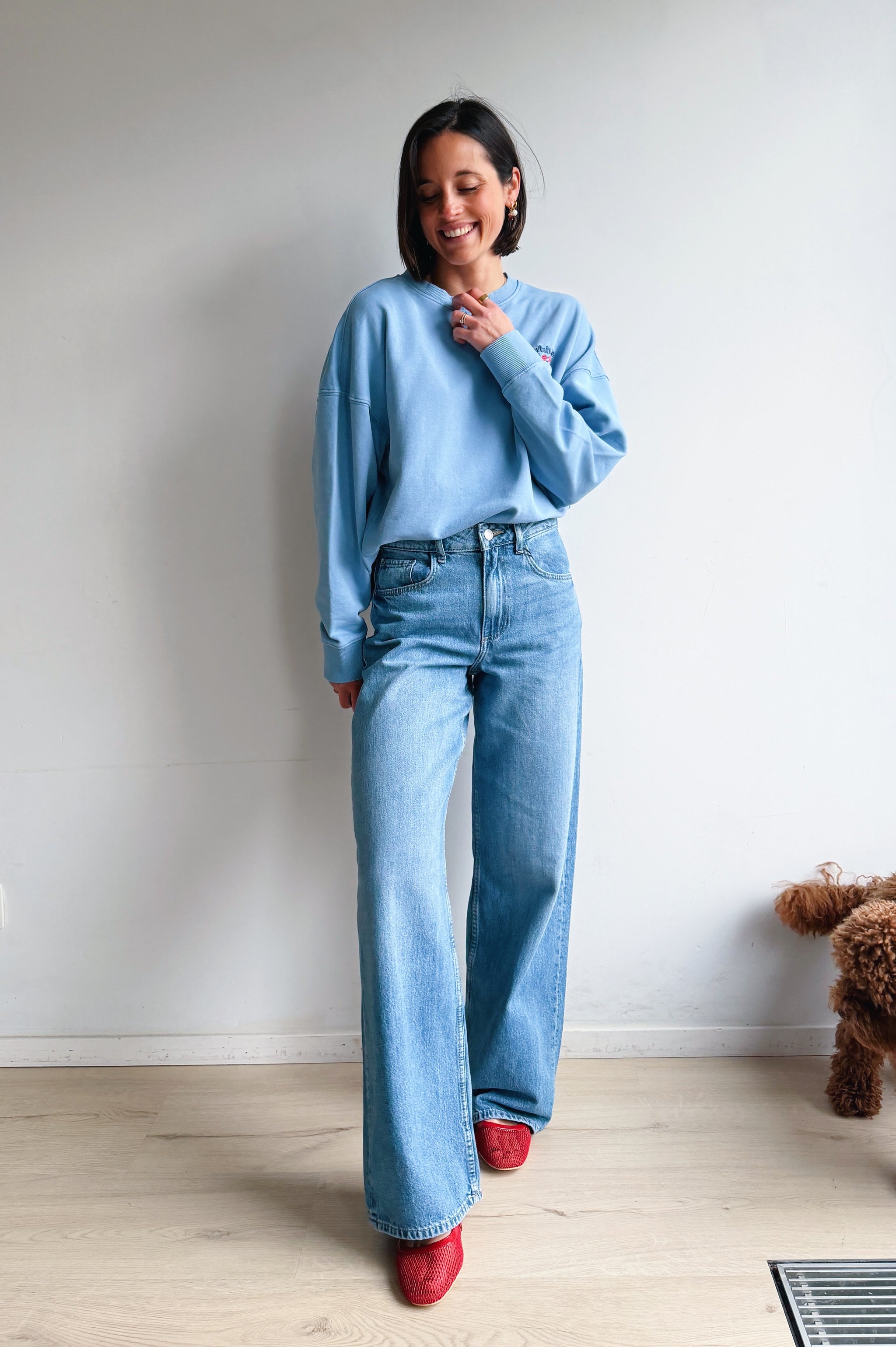 Deze comfortabele sweater heeft een relaxte, licht oversized pasvorm en is uitgevoerd in een zachte, stevige kwaliteit. De ronde hals en verlaagde schoudernaden zorgen voor een casual uitstraling. Op de borst is een subtiel geborduurd detail aangebracht, wat de sweater een speelse en vrouwelijke touch geeft. Afgewerkt met ribboorden aan de hals, mouwen en zoom voor extra draagcomfort. Perfect te combineren met een jeans, pantalon of relaxte broek voor een moeiteloos stijlvolle look.