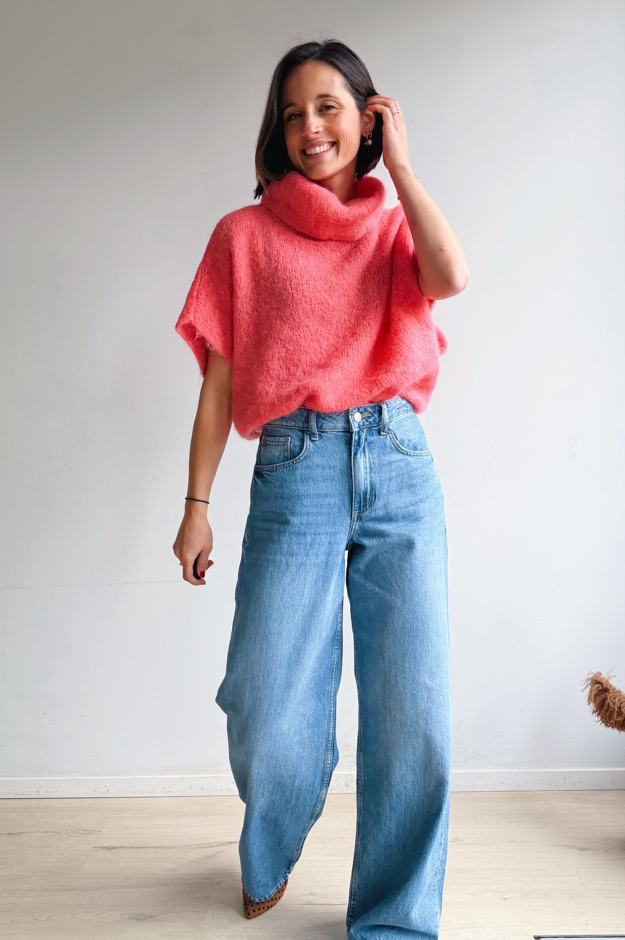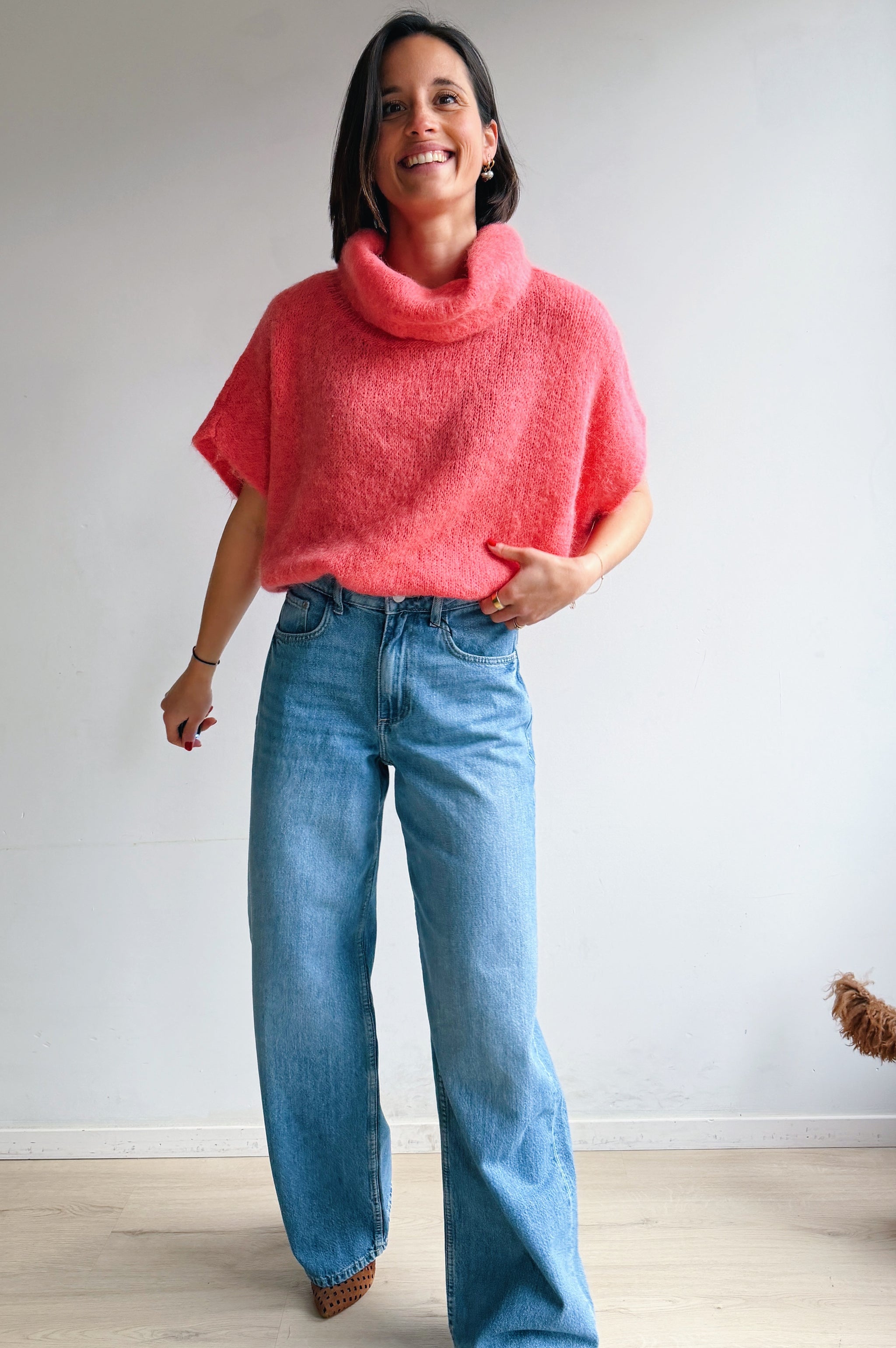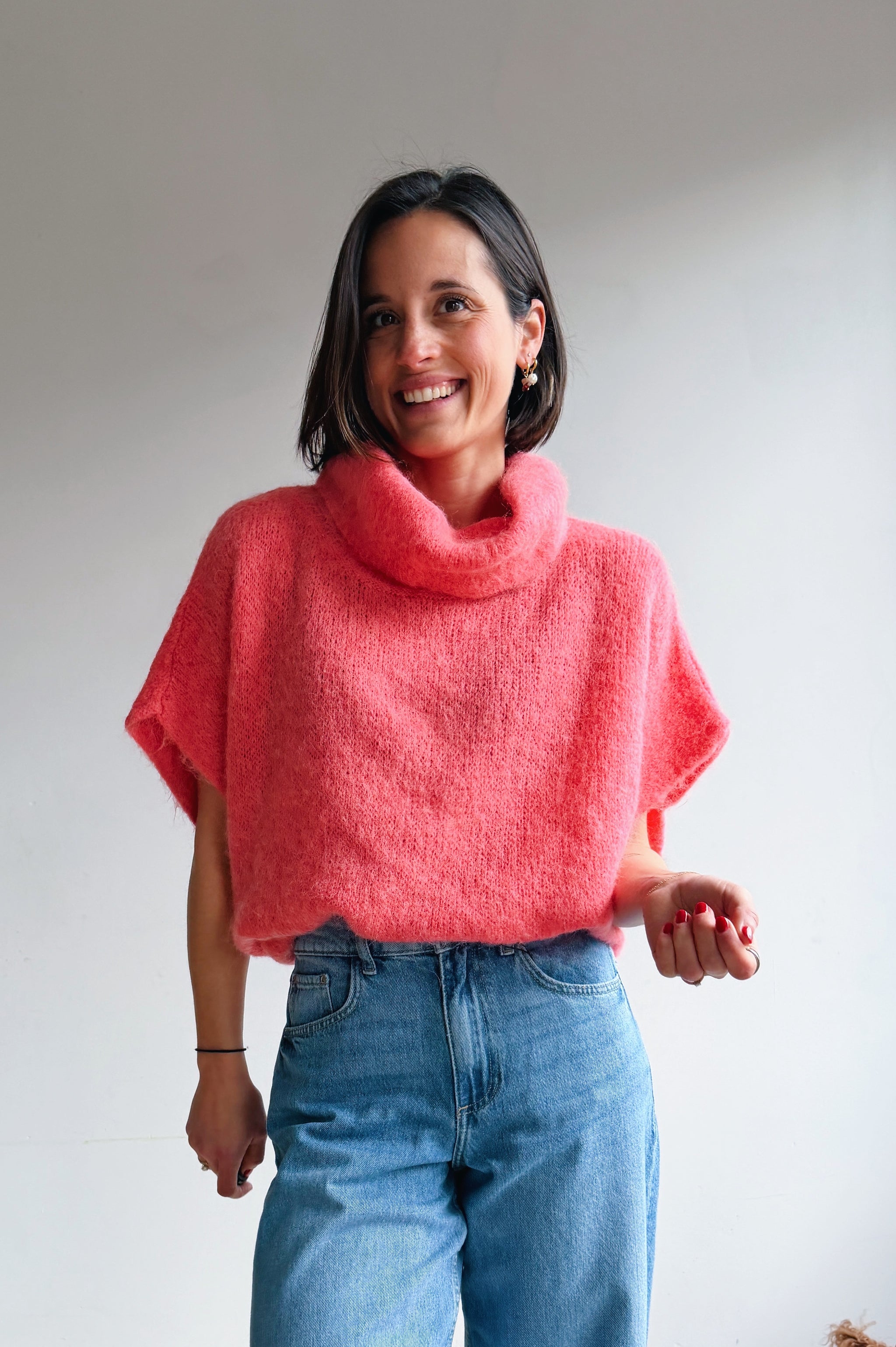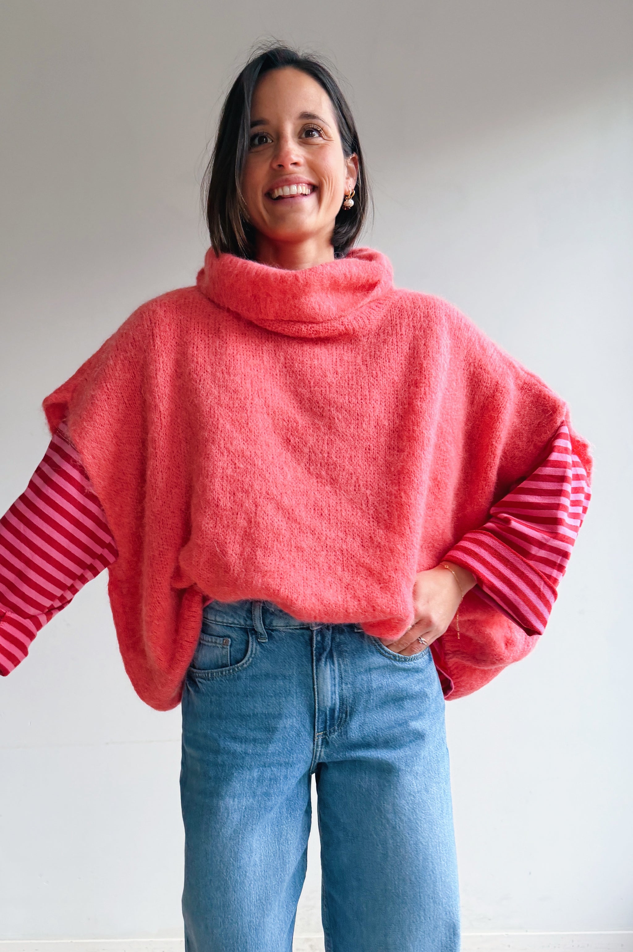 Een zachte, comfortabele pully met een moderne, nonchalante uitstraling. Het model heeft een losse heel oversized pasvorm met korte, wijde mouwen en een royale col die mooi valt. De luchtige knit voelt aangenaam aan op de huid en maakt deze trui perfect voor laagjeslooks of als statement piece.