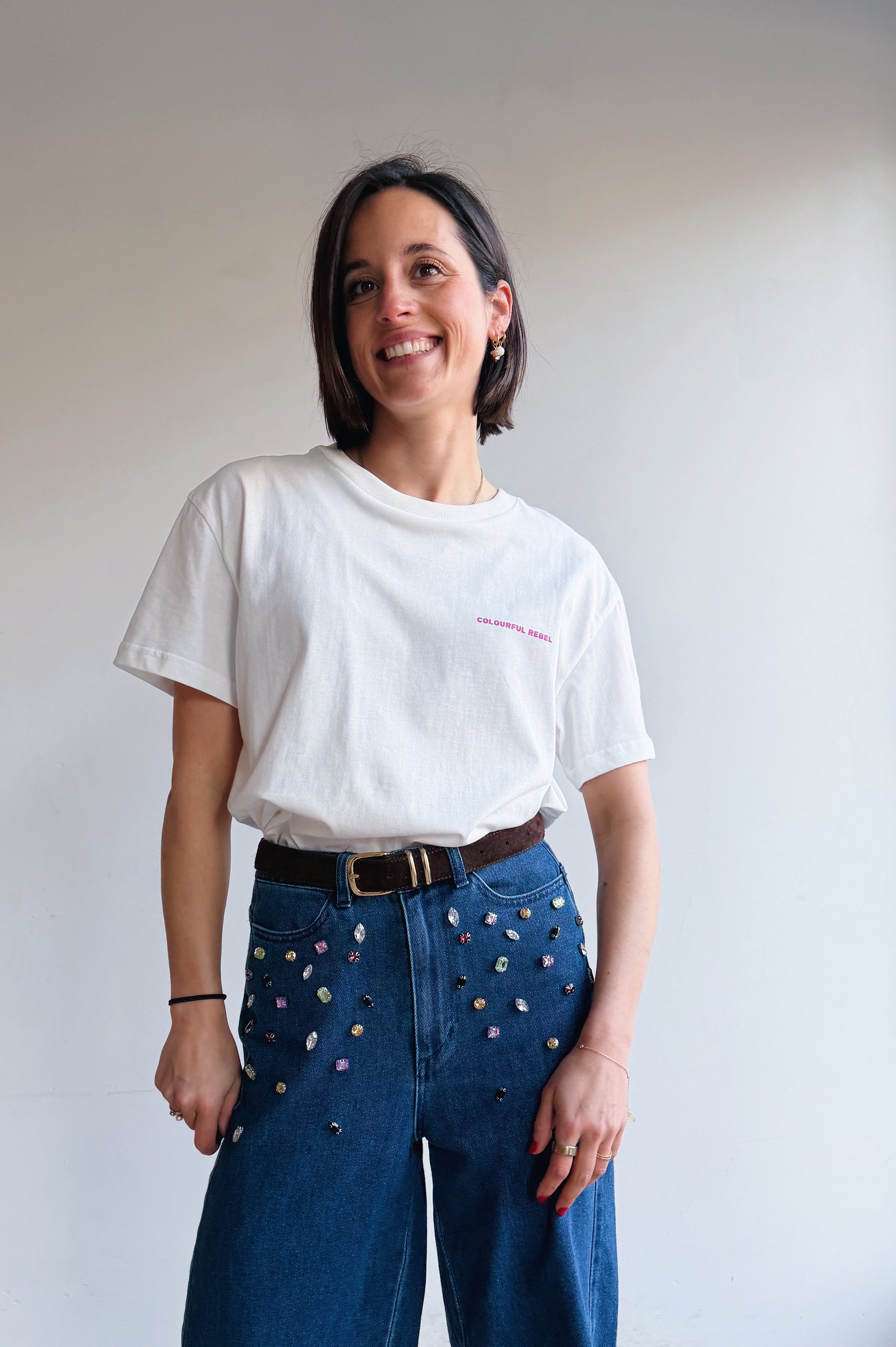 Florence meet 1m63 en draagt XS of maat 25 bij jeans
