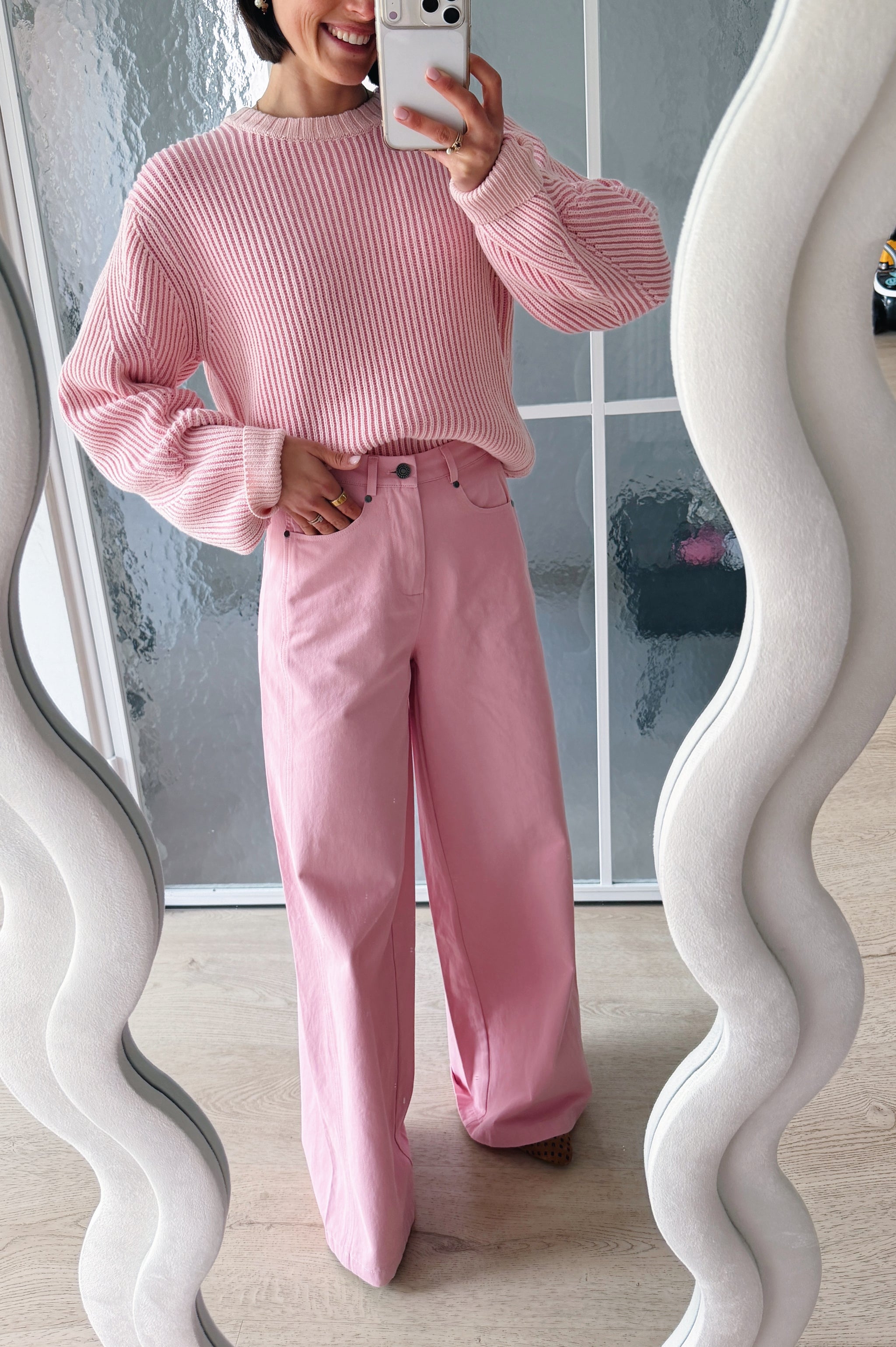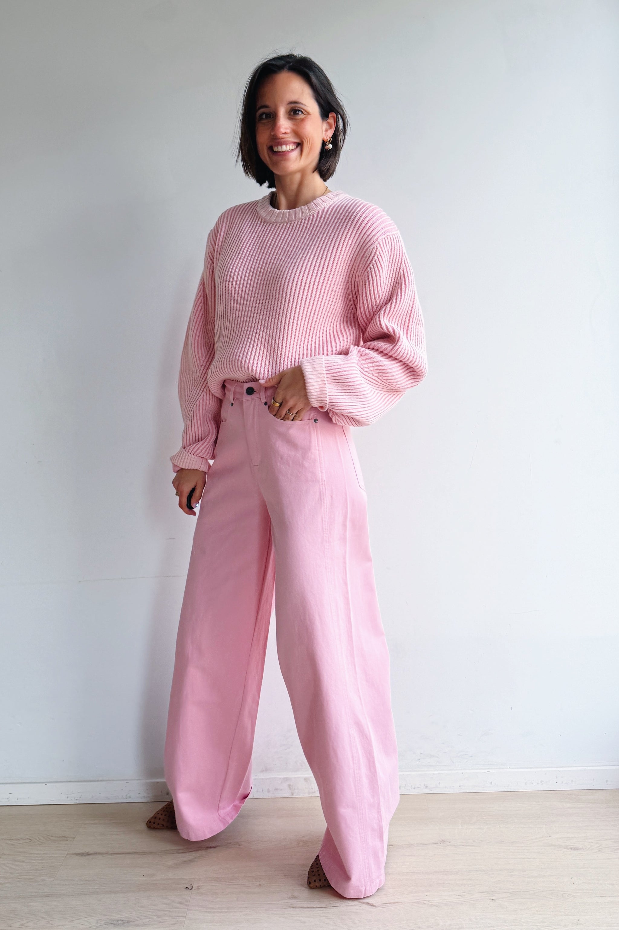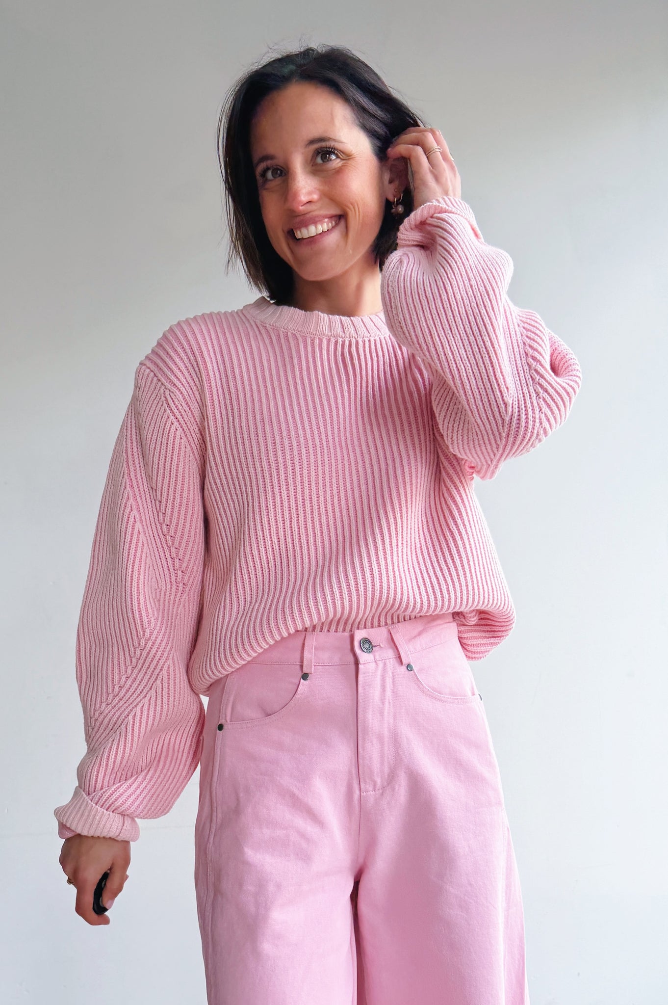Deze zachte ribgebreide pull combineert comfort met een vrouwelijke, moderne uitstraling. Het rechte, licht oversized silhouet zorgt voor een nonchalante fit, terwijl de fijne ribstructuur een subtiele textuur toevoegt. De ronde hals en lange mouwen met brede manchetten maken de look tijdloos en veelzijdig. Perfect om los te dragen of licht in de taille gestyled, zowel casual als chic te combineren.