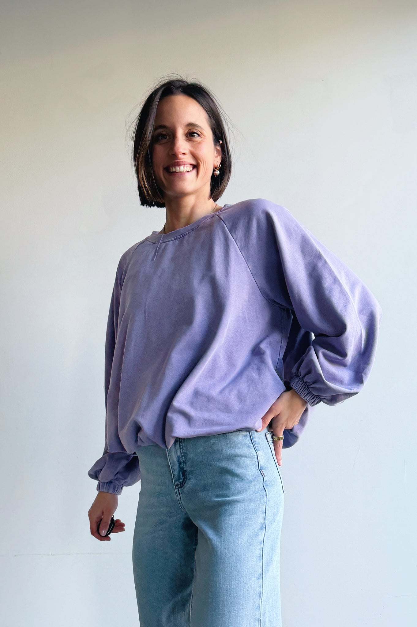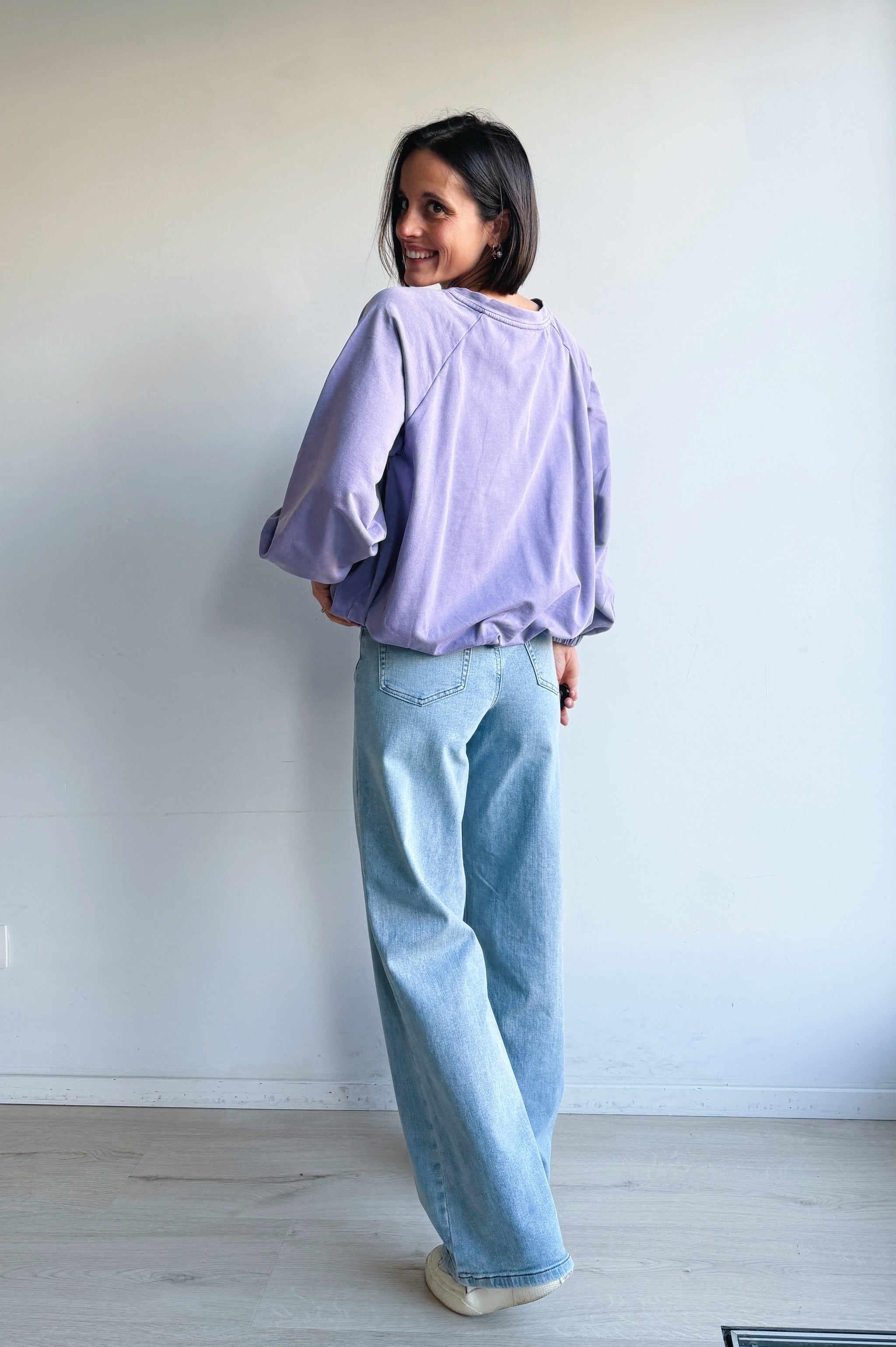 Deze washed balloon sweater kan je nietttt laten schieten. De zachte, gewassen look geeft de sweater een subtiel vintage karakter, terwijl de losse pasvorm zorgt voor een relaxte uitstraling. Dankzij het elastiek aan de onderzijde en aan de mouwen valt hij mooi bloezend zodat je die niet oncomfortabel zelf in de broek hoeft te steken.