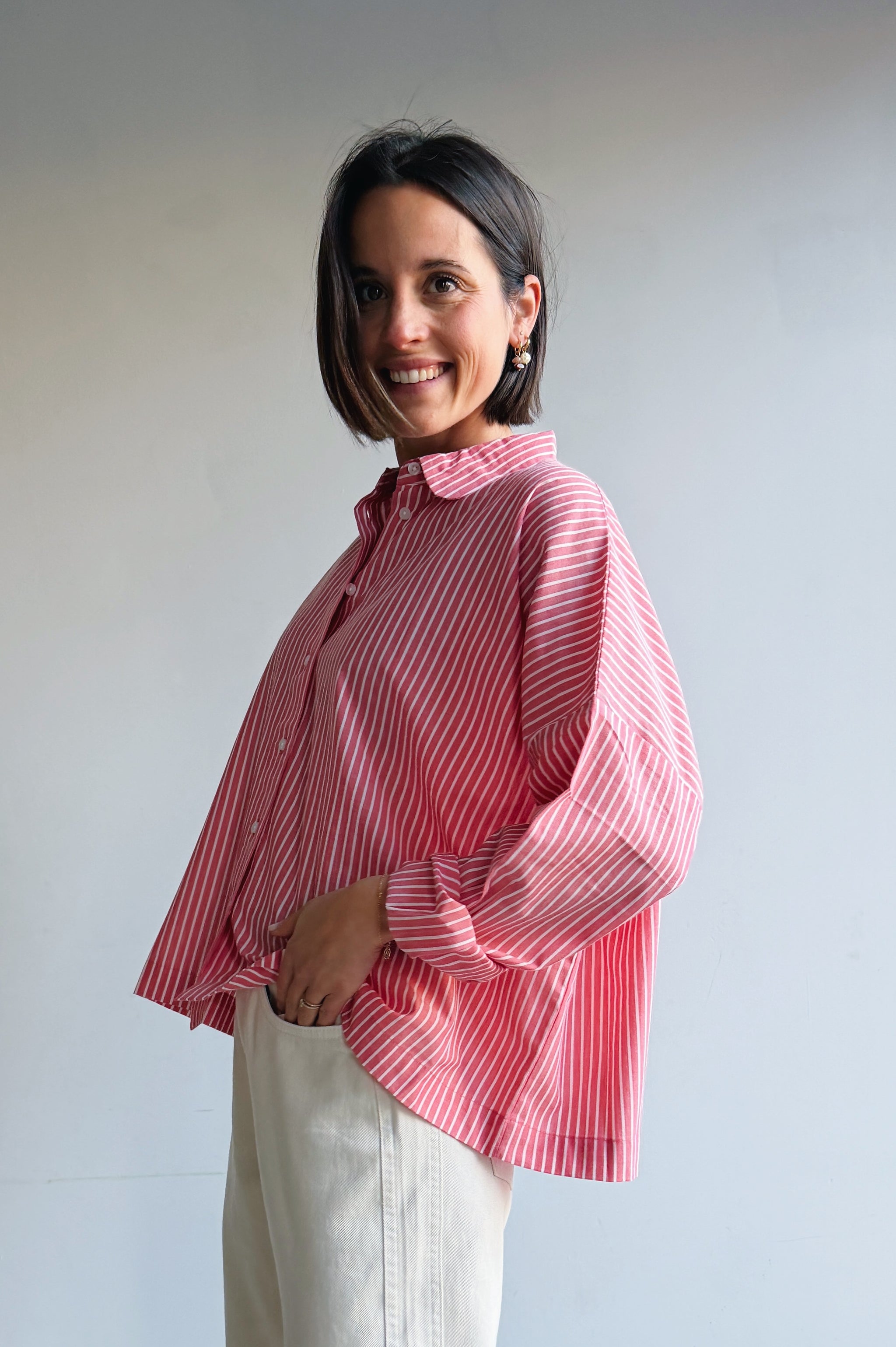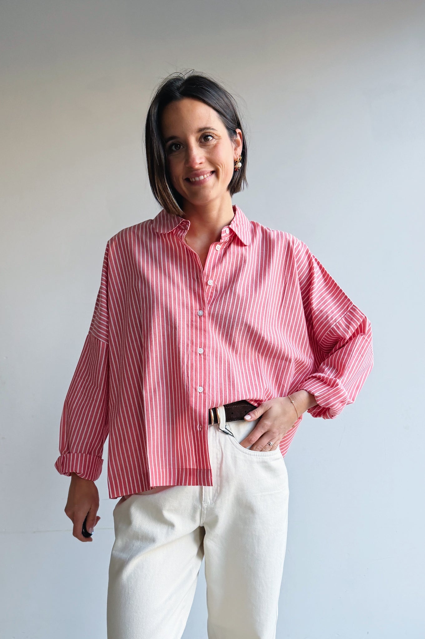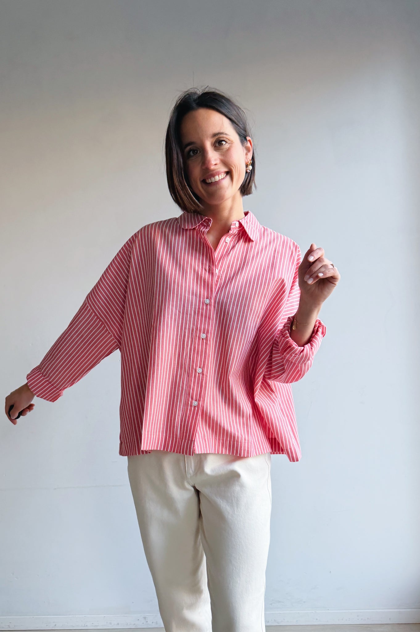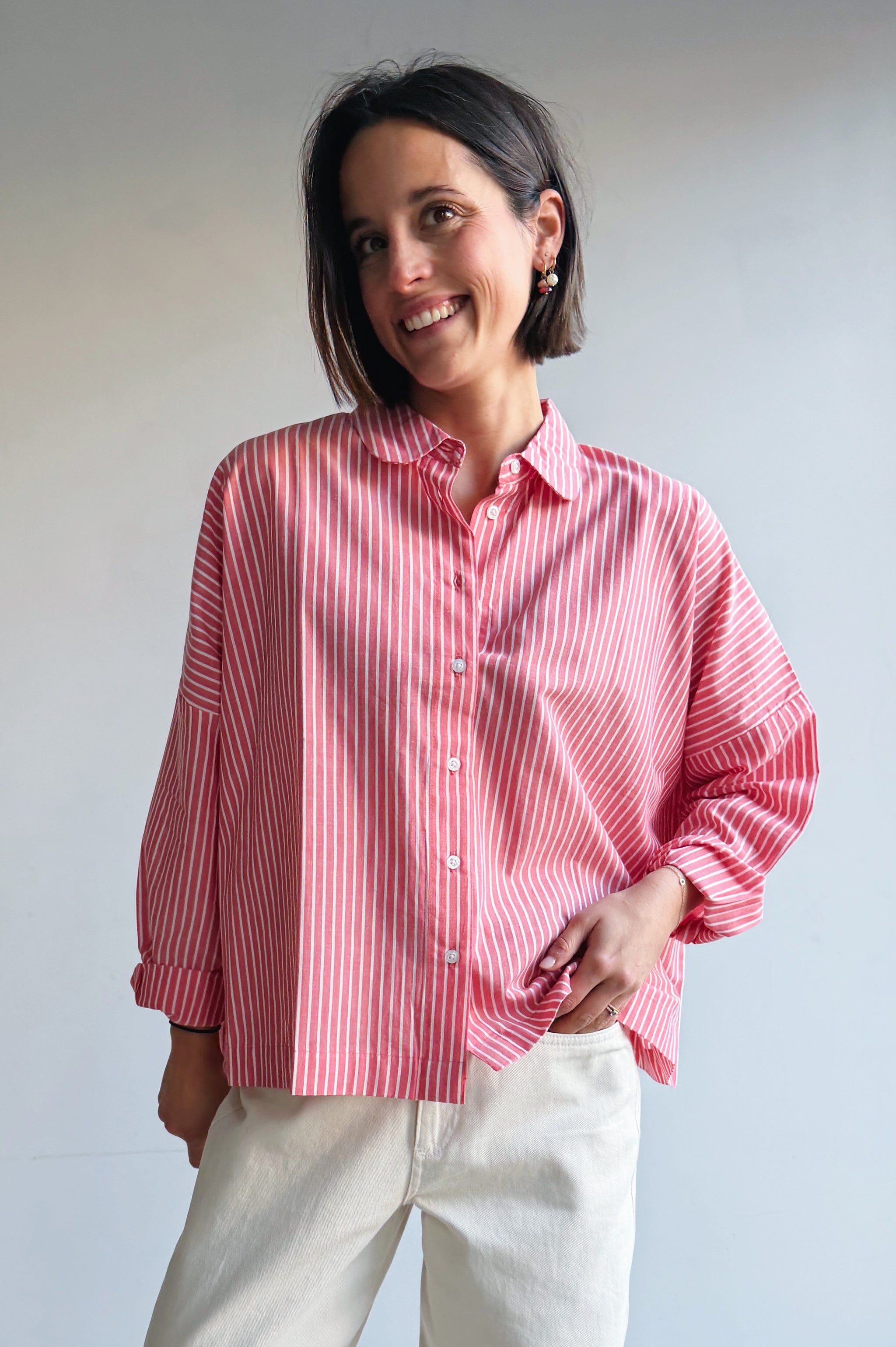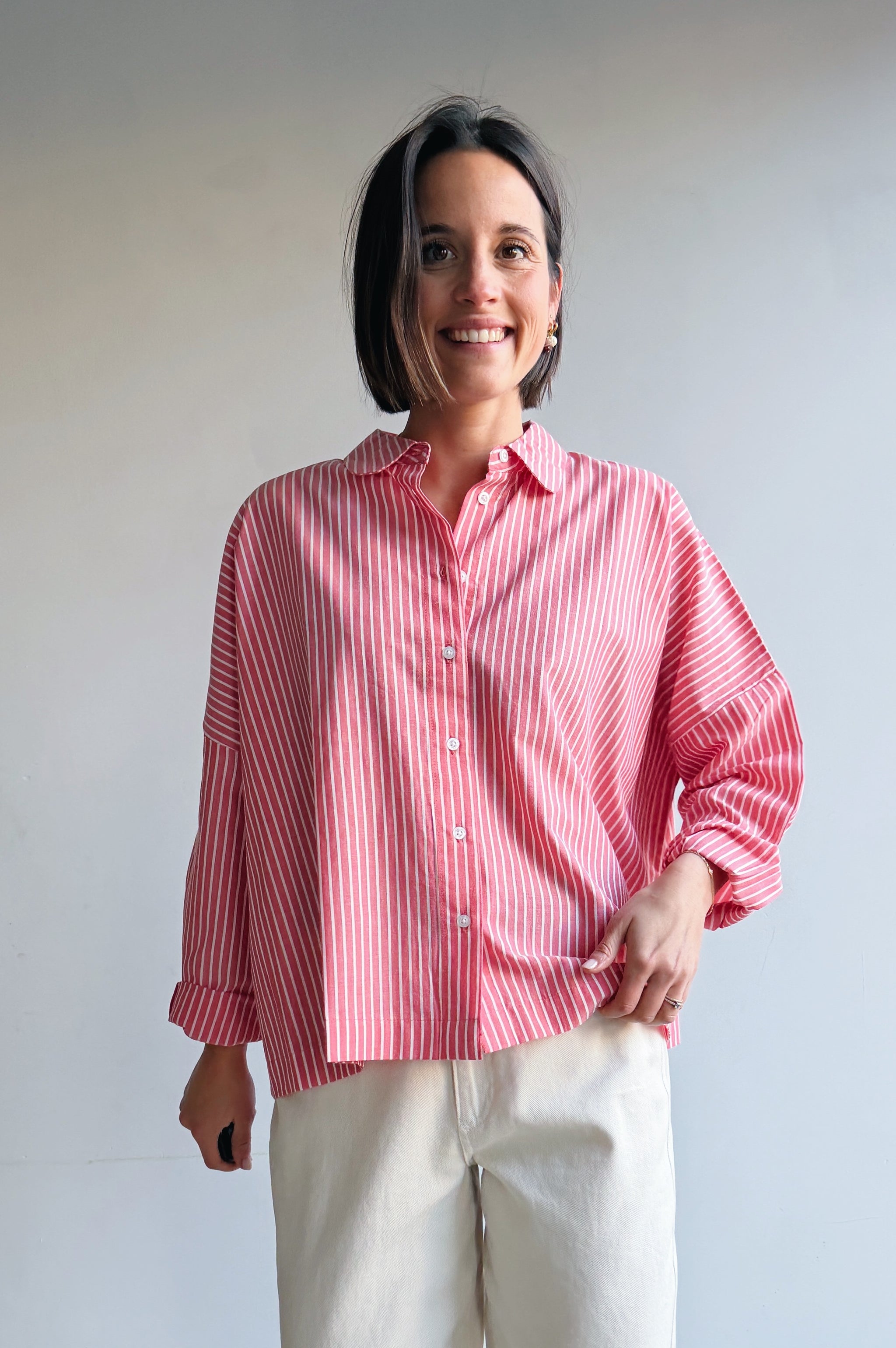 Een luchtig en vrouwelijk hemdje met fijne strepen en een frisse kleur die meteen opvalt. De losvallende pasvorm zorgt voor een ontspannen silhouet en draagt heerlijk comfortabel, terwijl de klassieke kraag en knoopsluiting het geheel een tijdloze uitstraling geven. Dit hemdje is perfect om los te dragen voor een casual look, maar ook mooi ingestopt voor een meer geklede outfit. Een veelzijdig item dat je moeiteloos combineert en waar je seizoen na seizoen plezier van hebt.