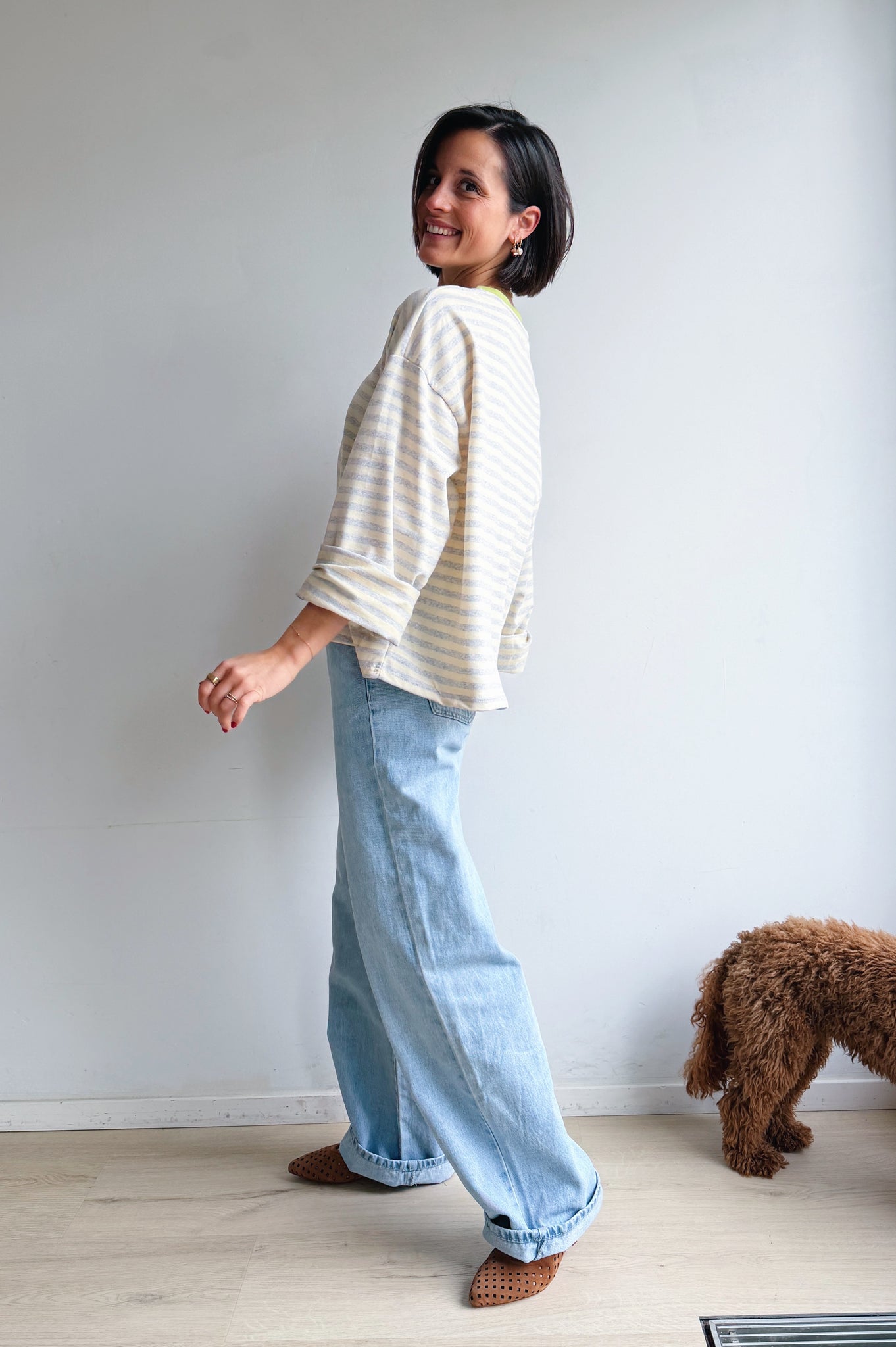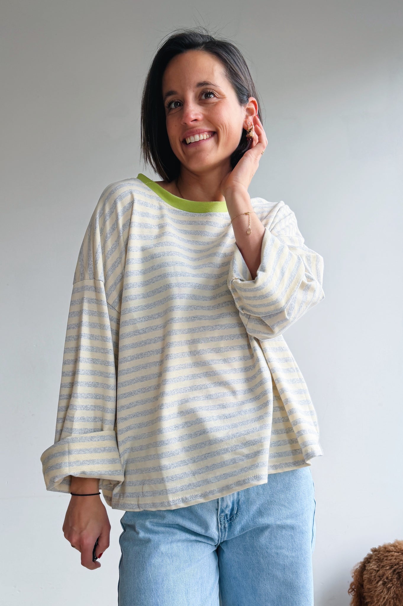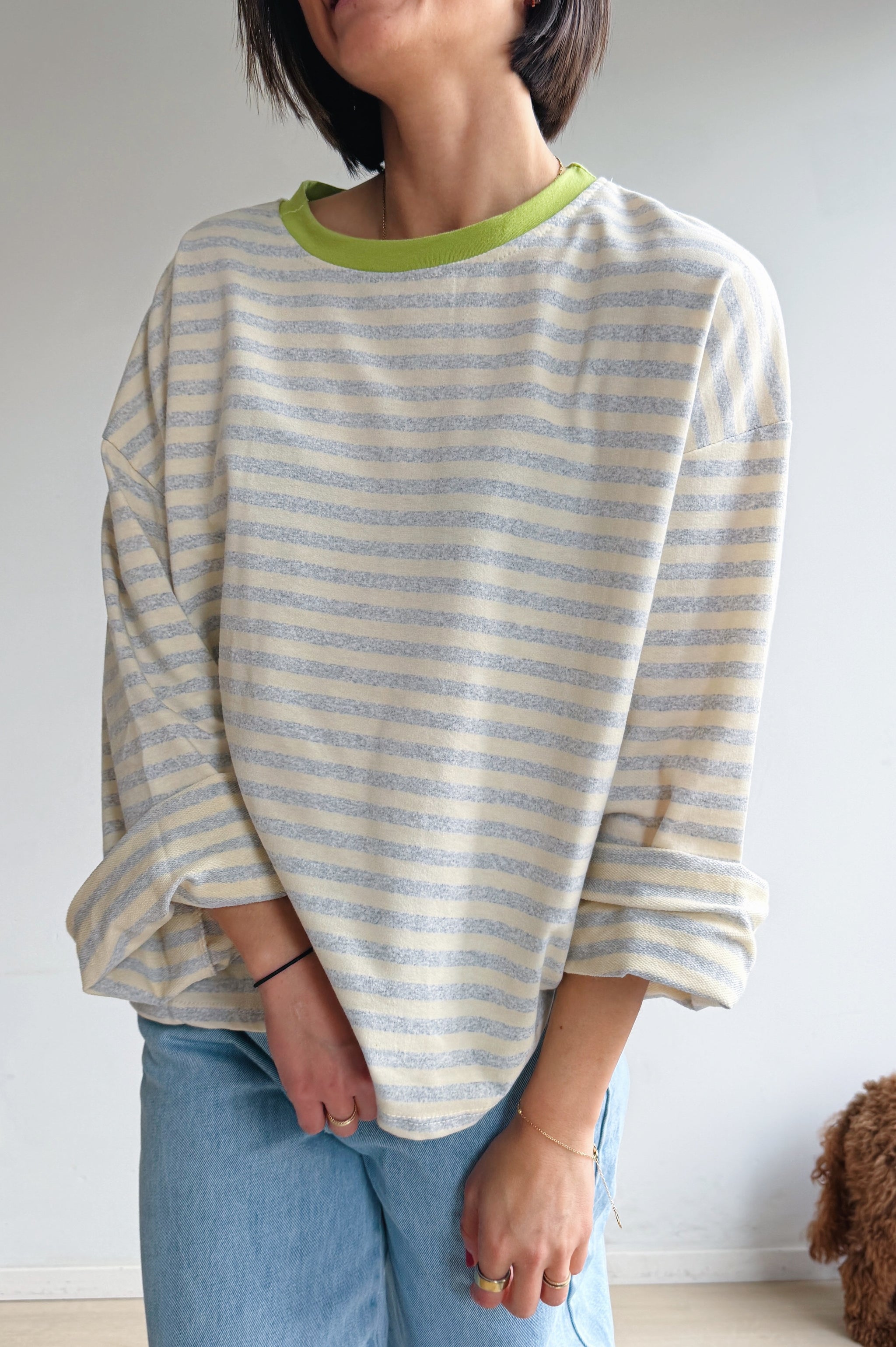 Deze kleurencombinatie zie je nergens anders! Speciaal gemaakt voor Lamie. Whiiii i'm so excited! Deze longsleeve is een echte essential met karakter. De speelse strepen en frisse kleurcombinaties zorgen voor een moderne, vrolijke uitstraling, terwijl het duurzaam katoen zorgt voor ultiem draagcomfort. De relaxte pasvorm en licht uiteenlopende lange mouwen maken ’m perfect voor een nonchalante, effortless look.