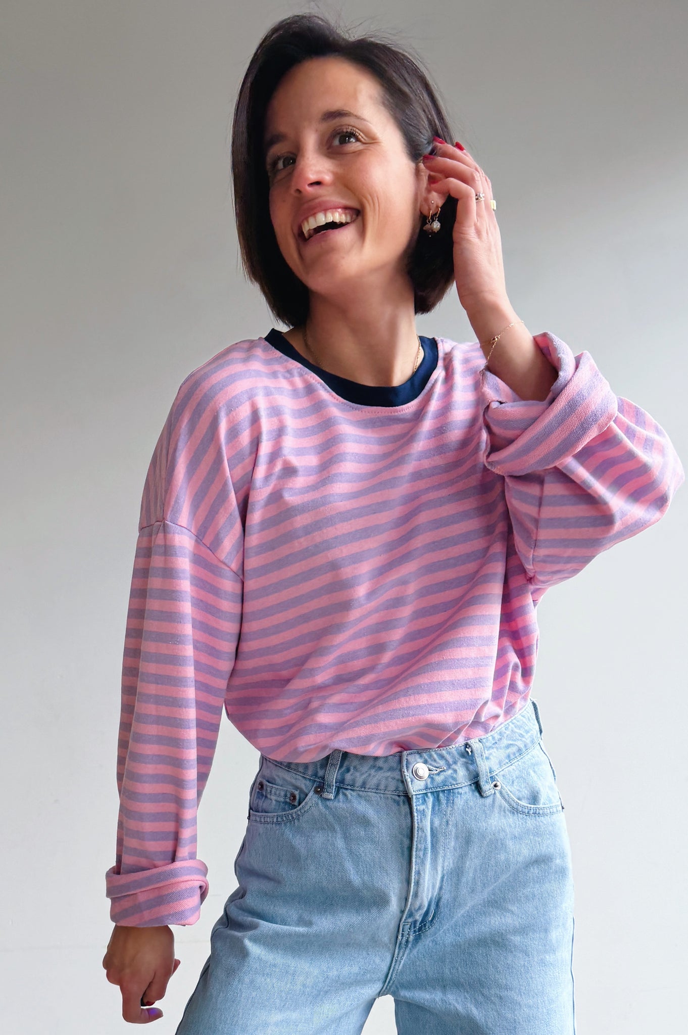 Deze kleurencombinatie zie je nergens anders! Speciaal gemaakt voor Lamie. Whiiii i'm so excited! Deze longsleeve is een echte essential met karakter. De speelse strepen en frisse kleurcombinaties zorgen voor een moderne, vrolijke uitstraling, terwijl het duurzaam katoen zorgt voor ultiem draagcomfort. De relaxte pasvorm en licht uiteenlopende lange mouwen maken ’m perfect voor een nonchalante, effortless look.