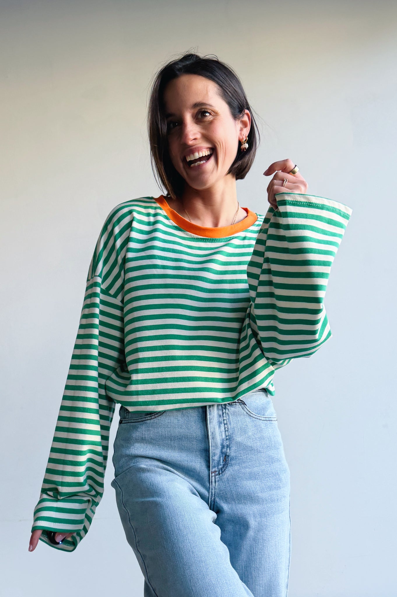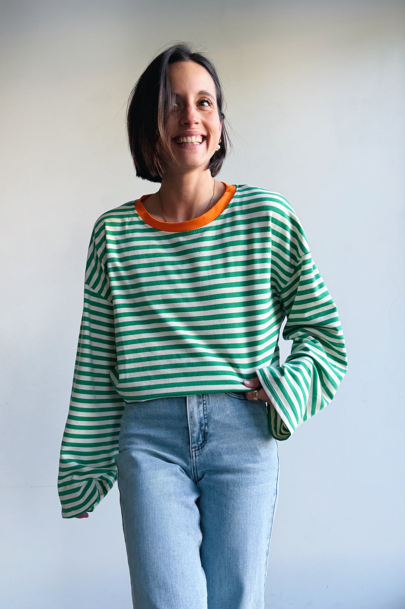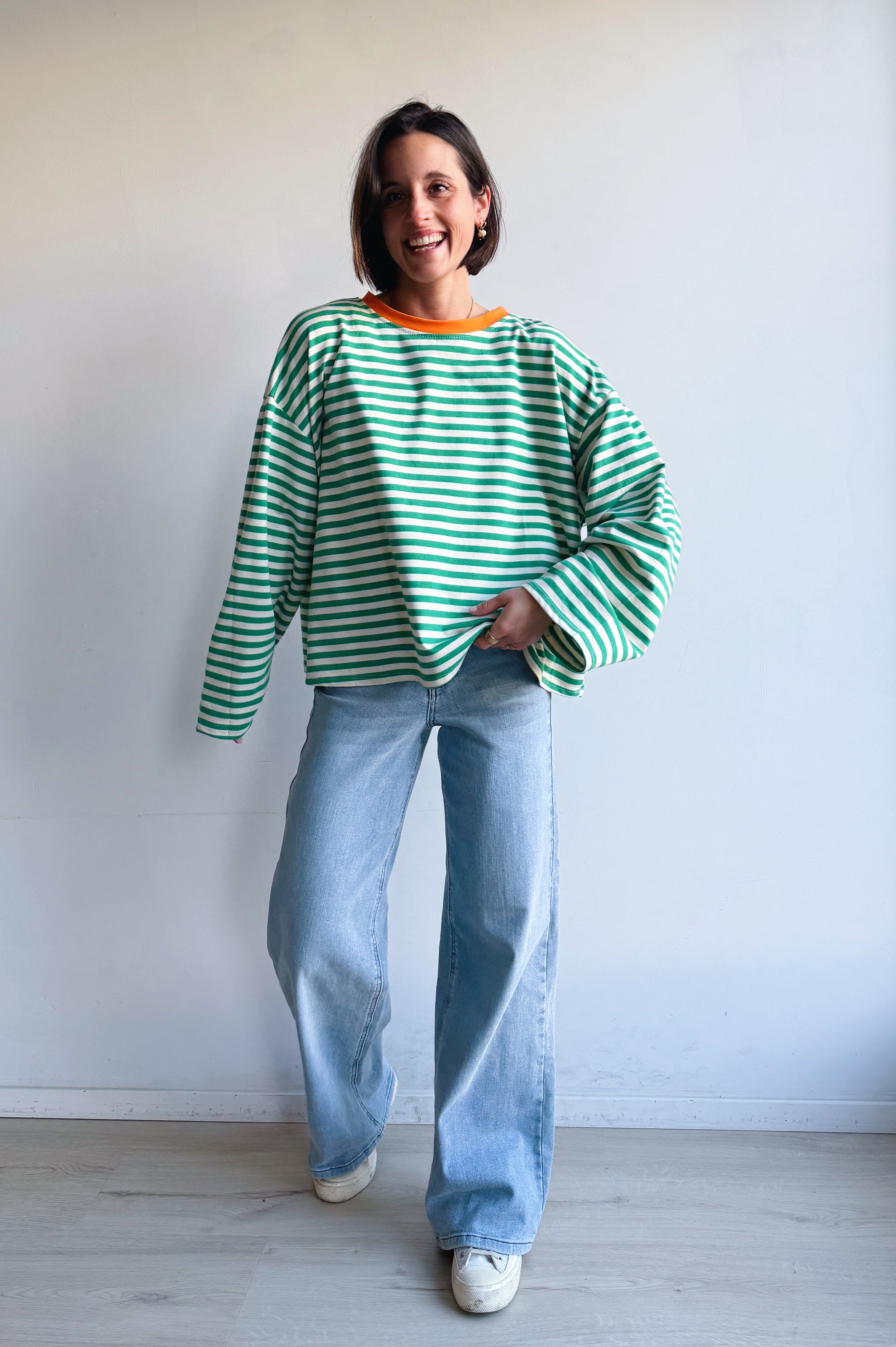Deze longsleeve is een echte essential met karakter. De speelse strepen en frisse kleurcombinaties zorgen voor een moderne, vrolijke uitstraling, terwijl het duurzaam katoen zorgt voor ultiem draagcomfort. De relaxte pasvorm en licht uiteenlopende lange mouwen maken ’m perfect voor een nonchalante, effortless look.