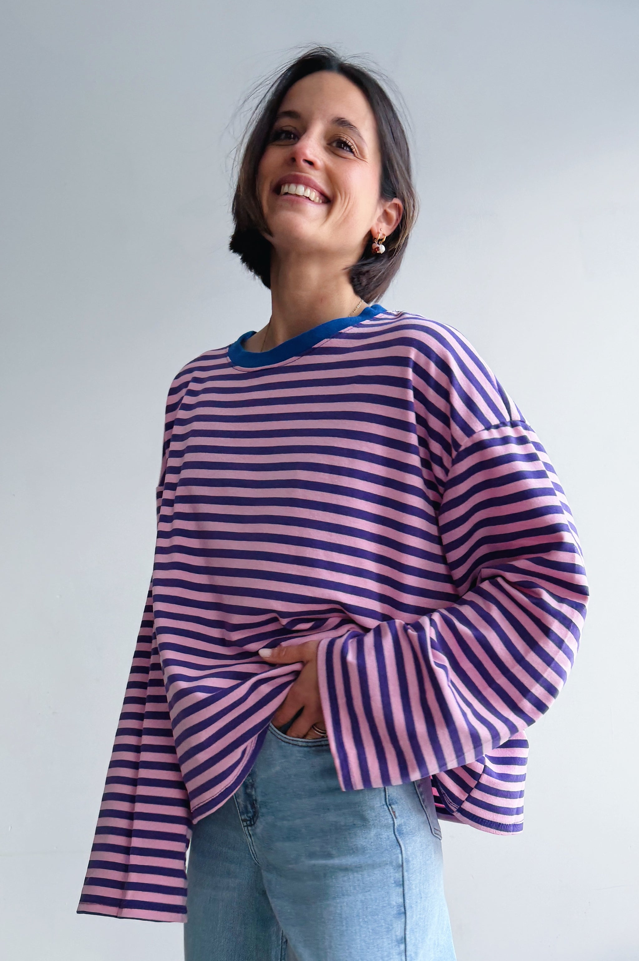 Deze longsleeve is een echte essential met karakter. De speelse strepen en frisse kleurcombinaties zorgen voor een moderne, vrolijke uitstraling, terwijl het duurzaam katoen zorgt voor ultiem draagcomfort. De relaxte pasvorm en licht uiteenlopende lange mouwen maken ’m perfect voor een nonchalante, effortless look.
