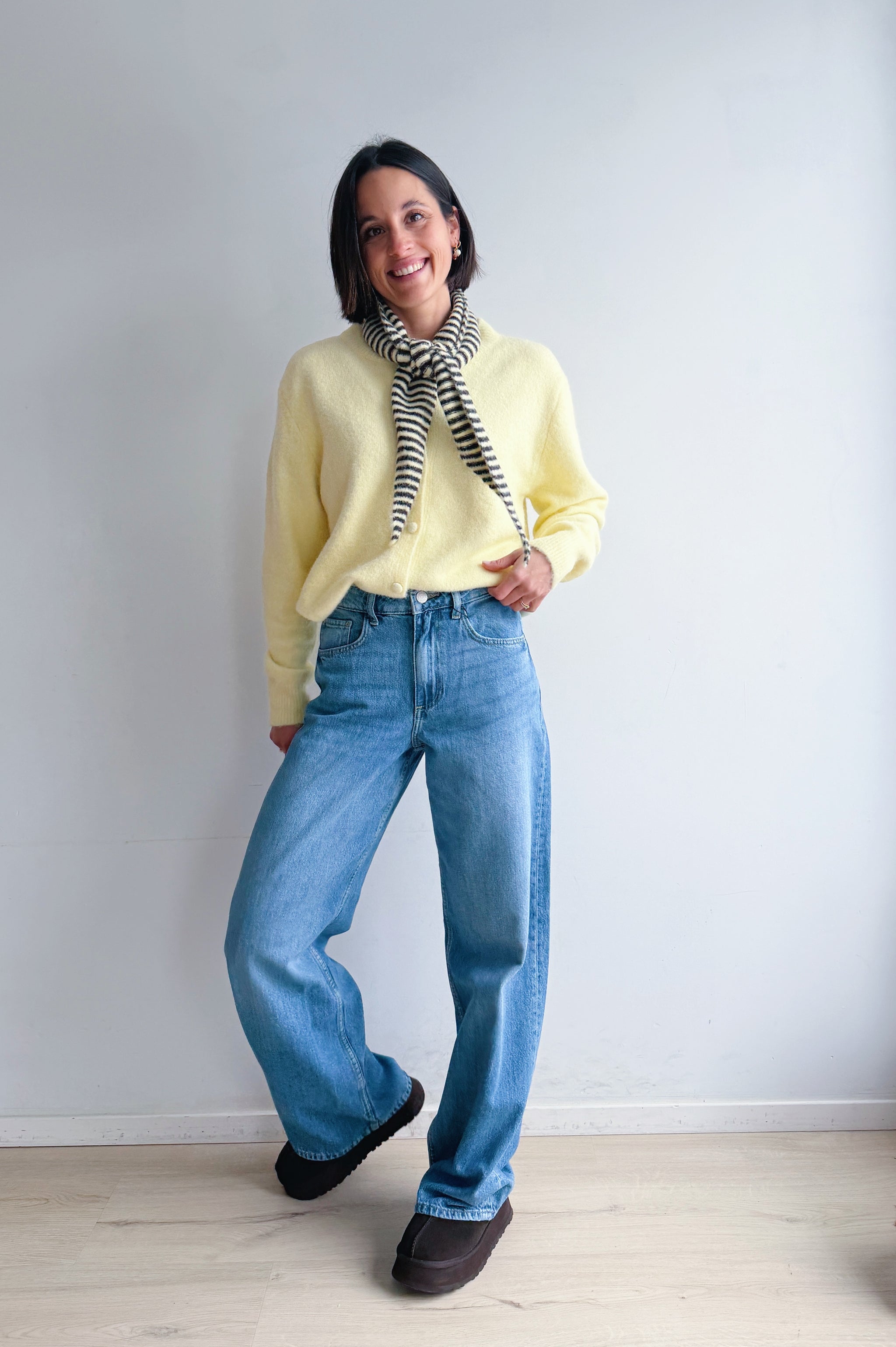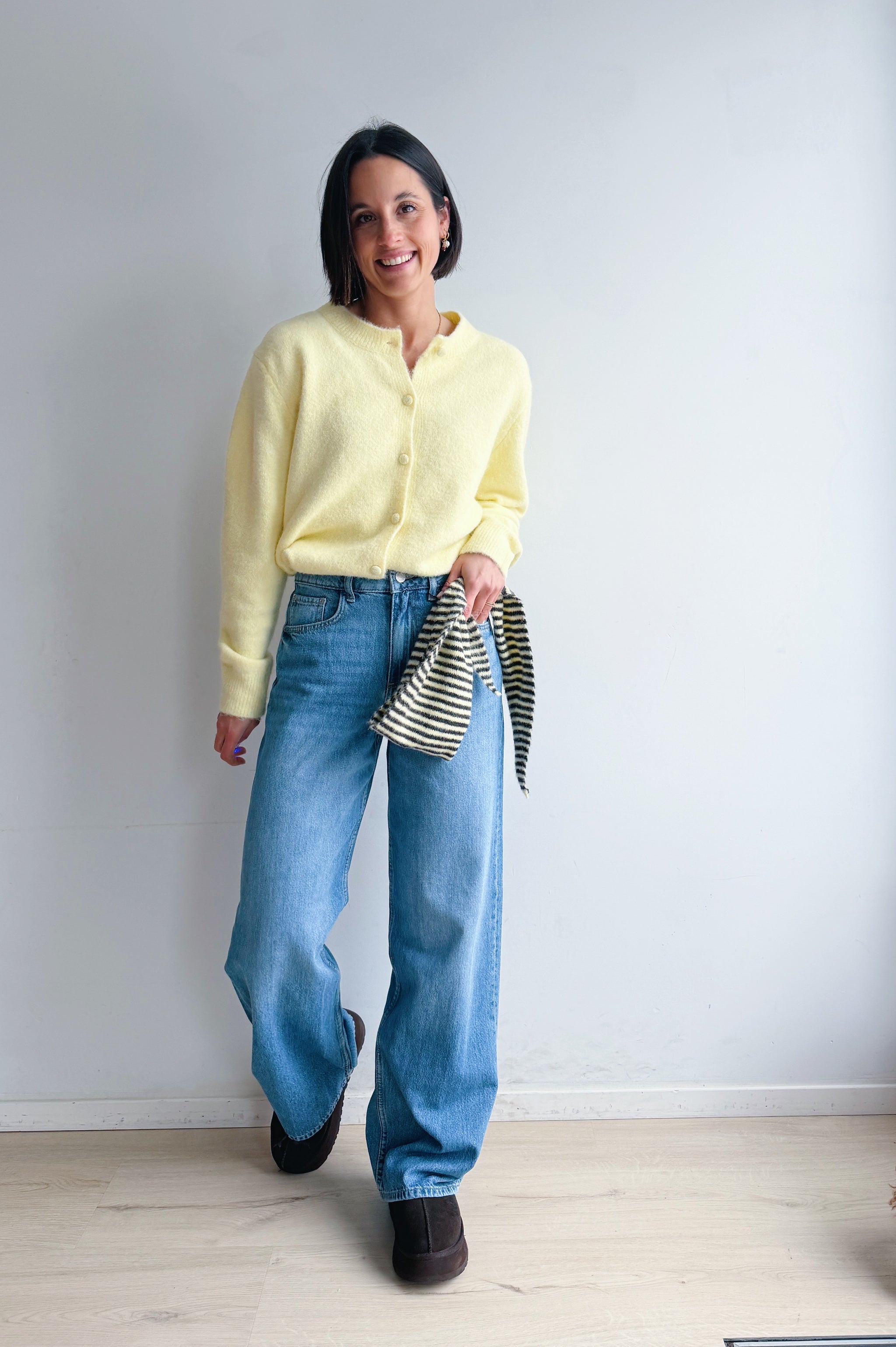 Deze extreem zachte gilet is een tijdloze toevoeging aan je kleerkast en perfect voor elk seizoen. Het model heeft een comfortabele, rechte pasvorm met lange mouwen, een ronde hals en een knoopsluiting aan de voorkant. De fijngebreide stof voelt aangenaam zacht aan op de huid en geeft een warme, cosy uitstraling zonder zwaar te zijn. Ideaal om los te dragen of gelaagd over een top of blouse, zowel casual als iets gekleder te stylen.