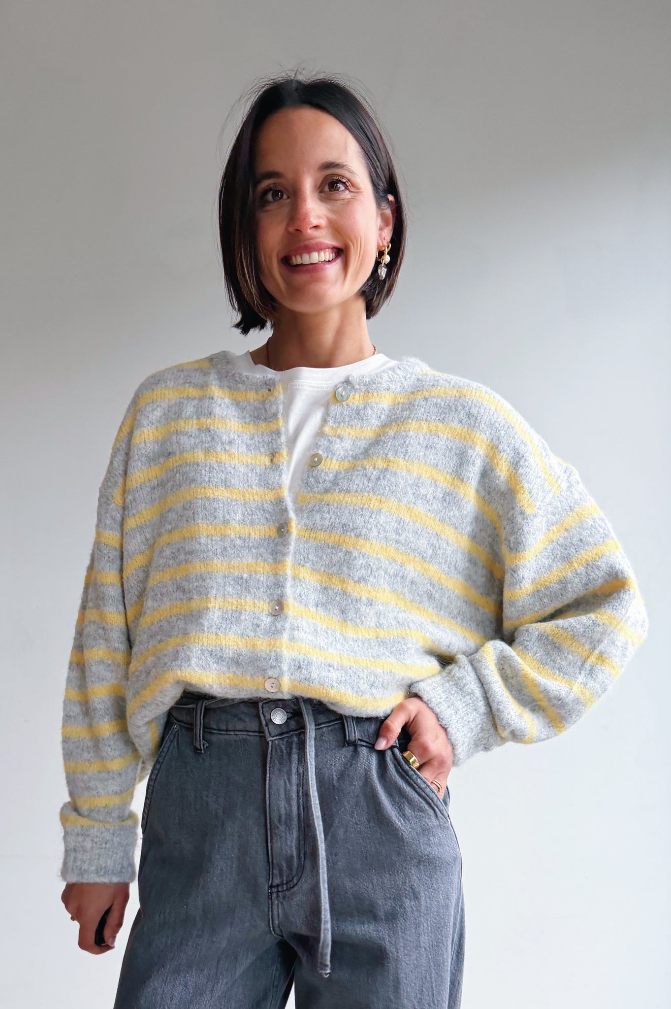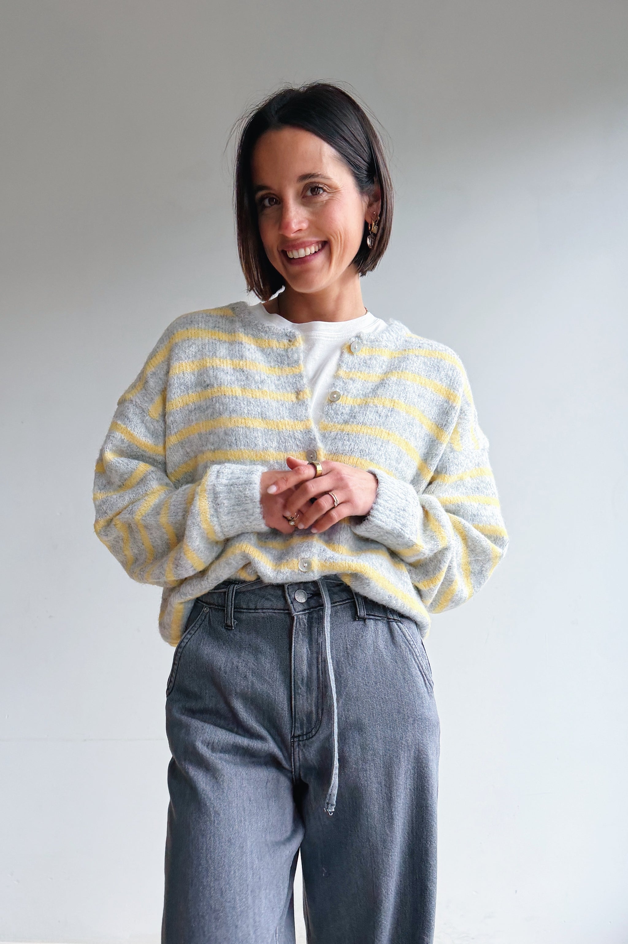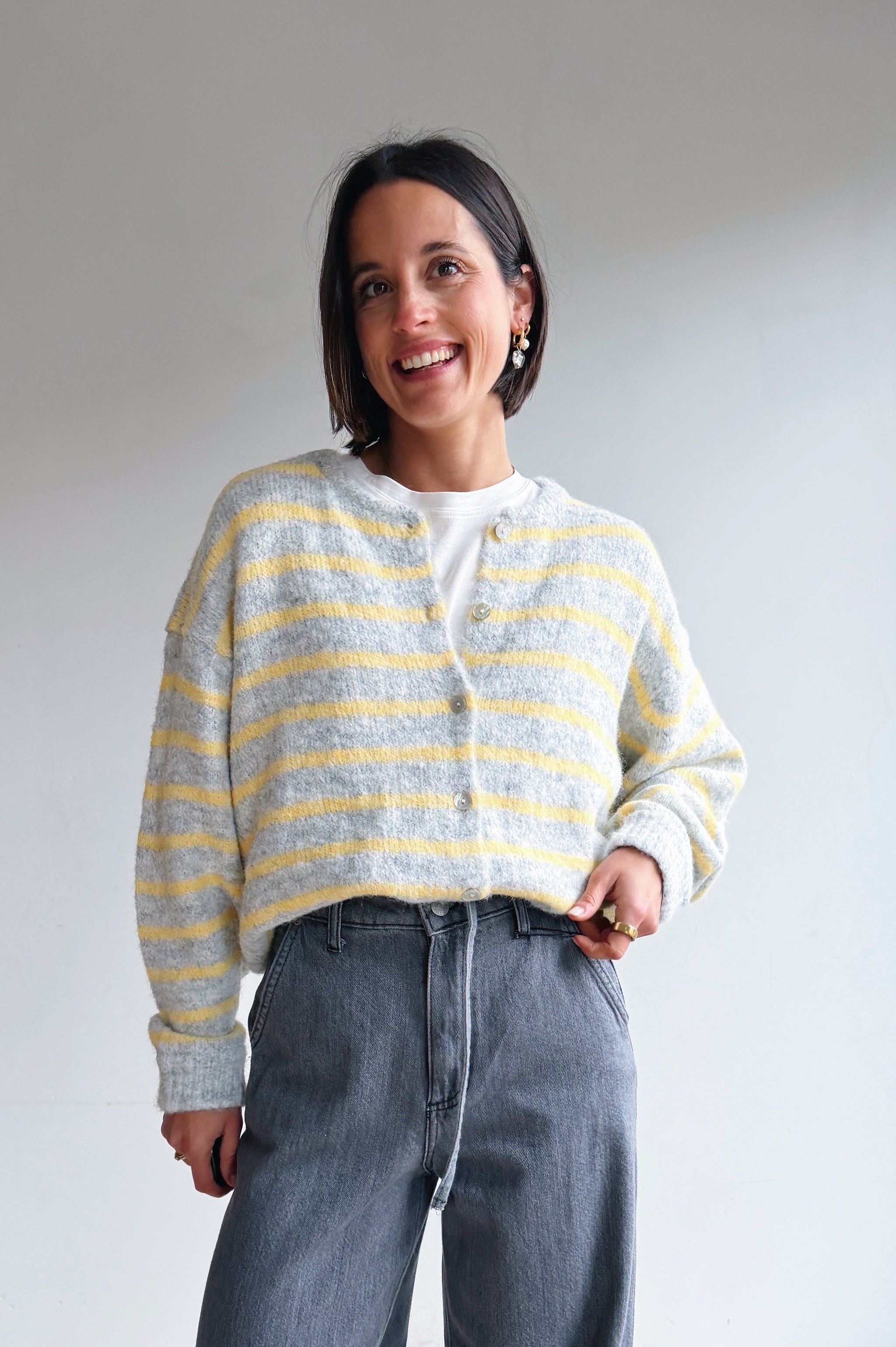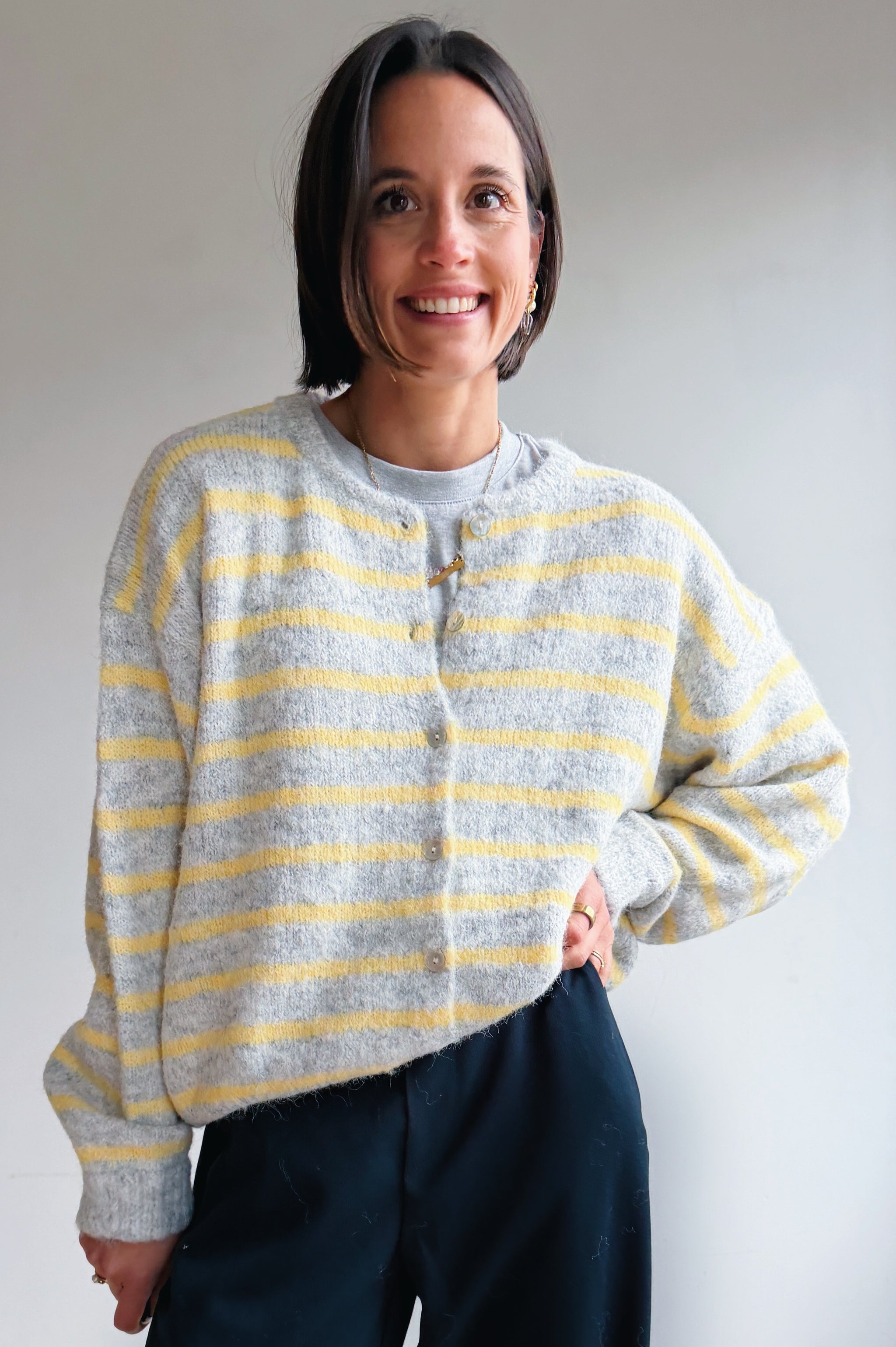 Sluit de gilet met prachtige knoopjes en draag er een hemdje onder om een verfijnde touch toe te voegen en je look te personaliseren. Of draag hem los met een t-shirt onder.