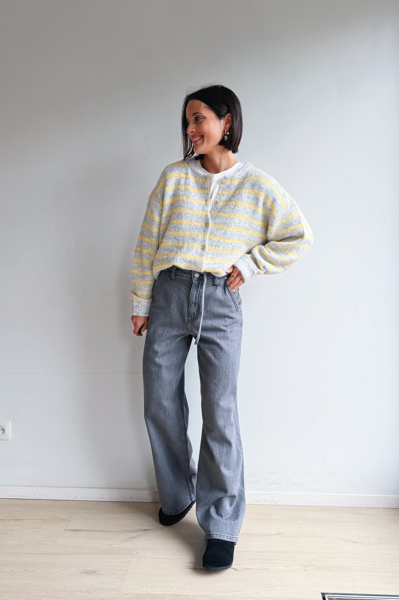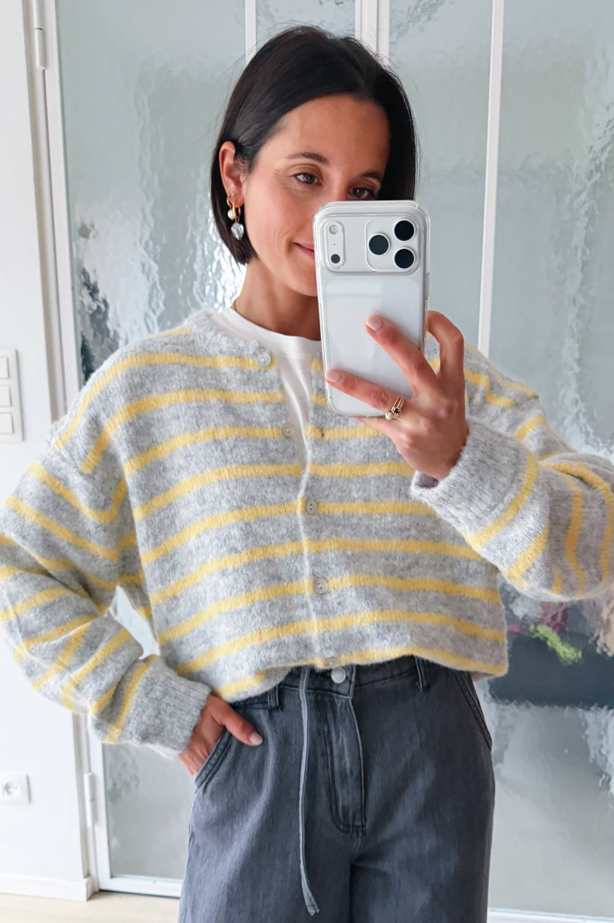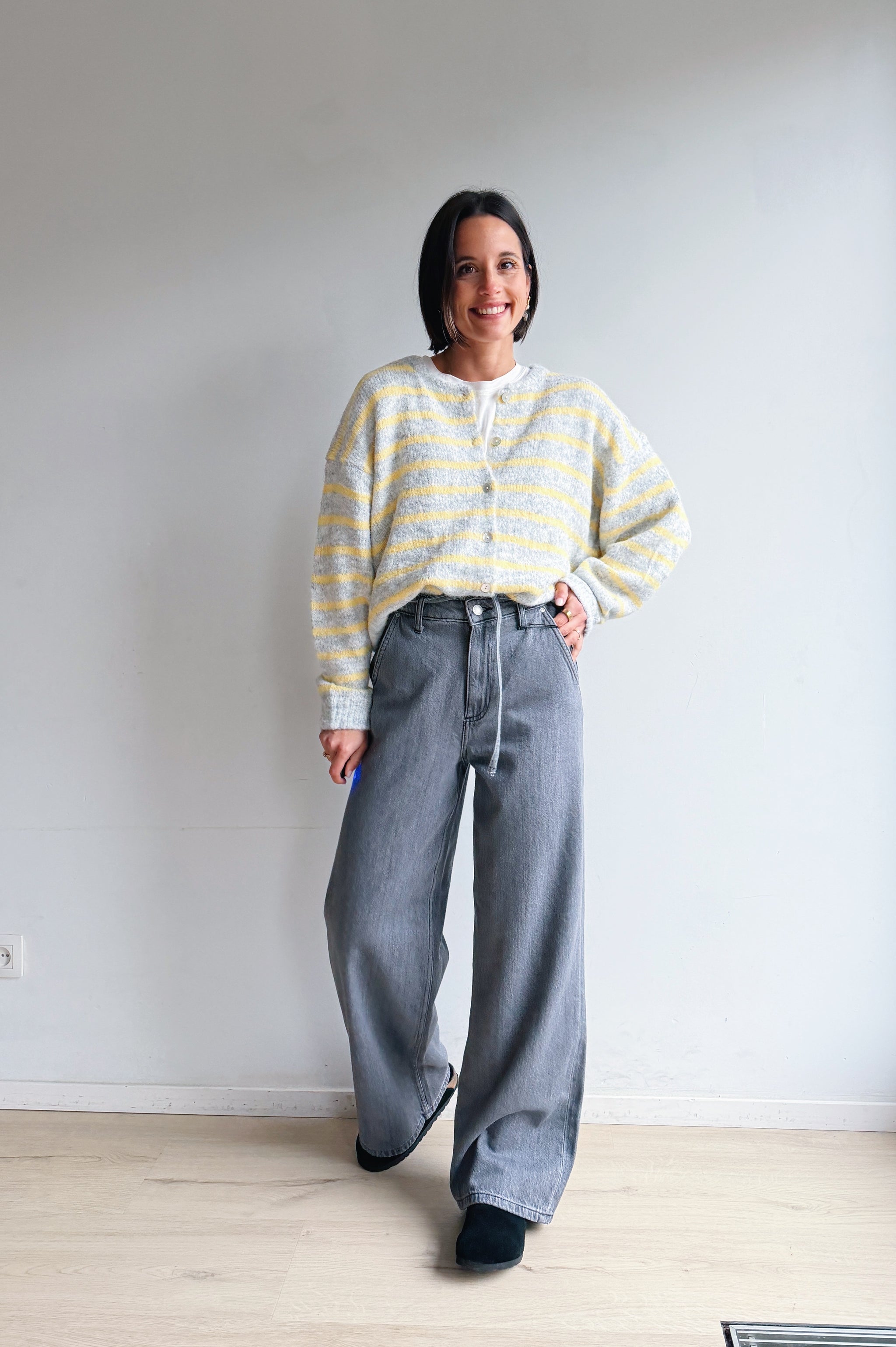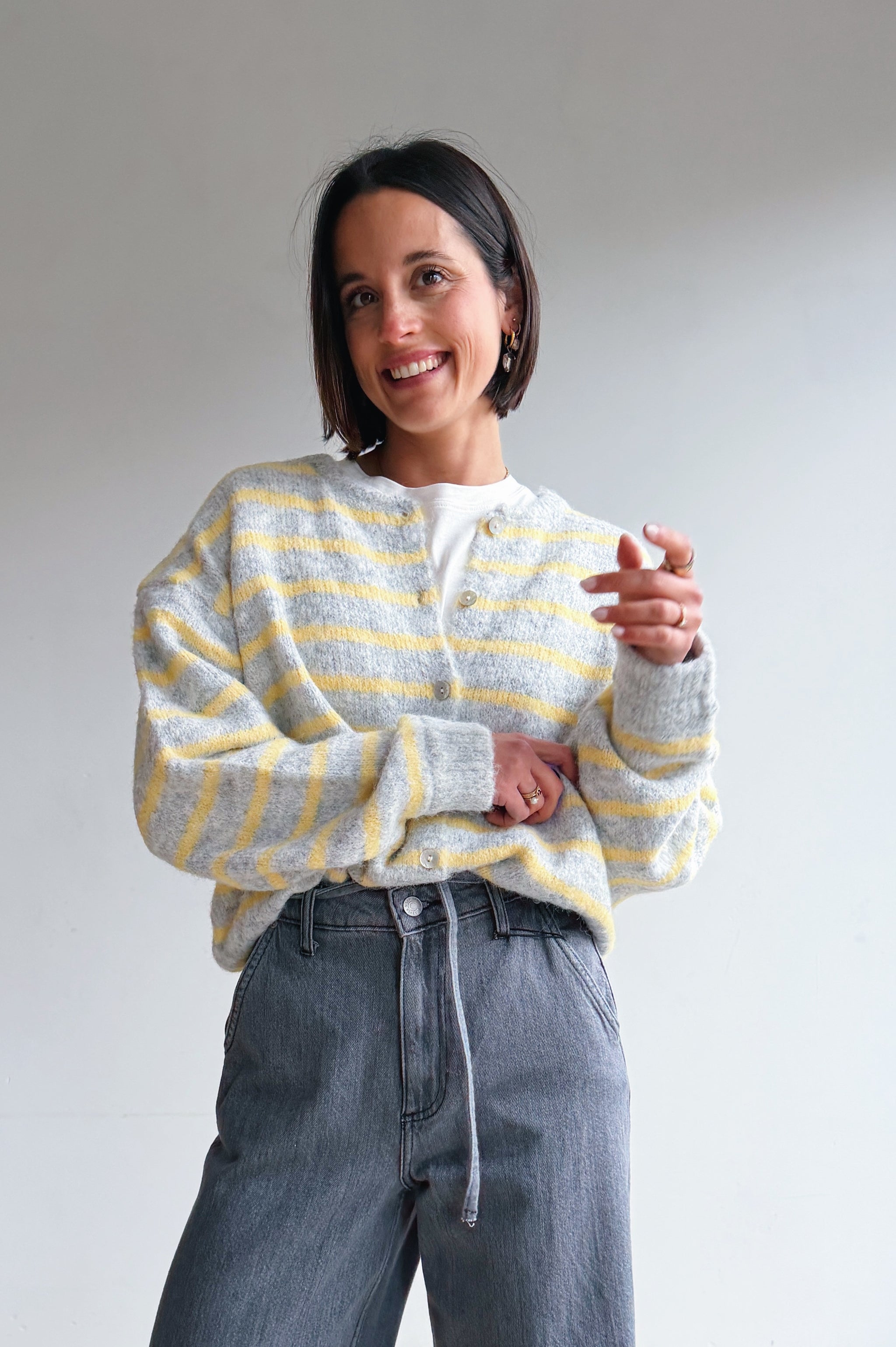 Sluit de gilet met prachtige knoopjes en draag er een hemdje onder om een verfijnde touch toe te voegen en je look te personaliseren. Of draag hem los met een t-shirt onder.